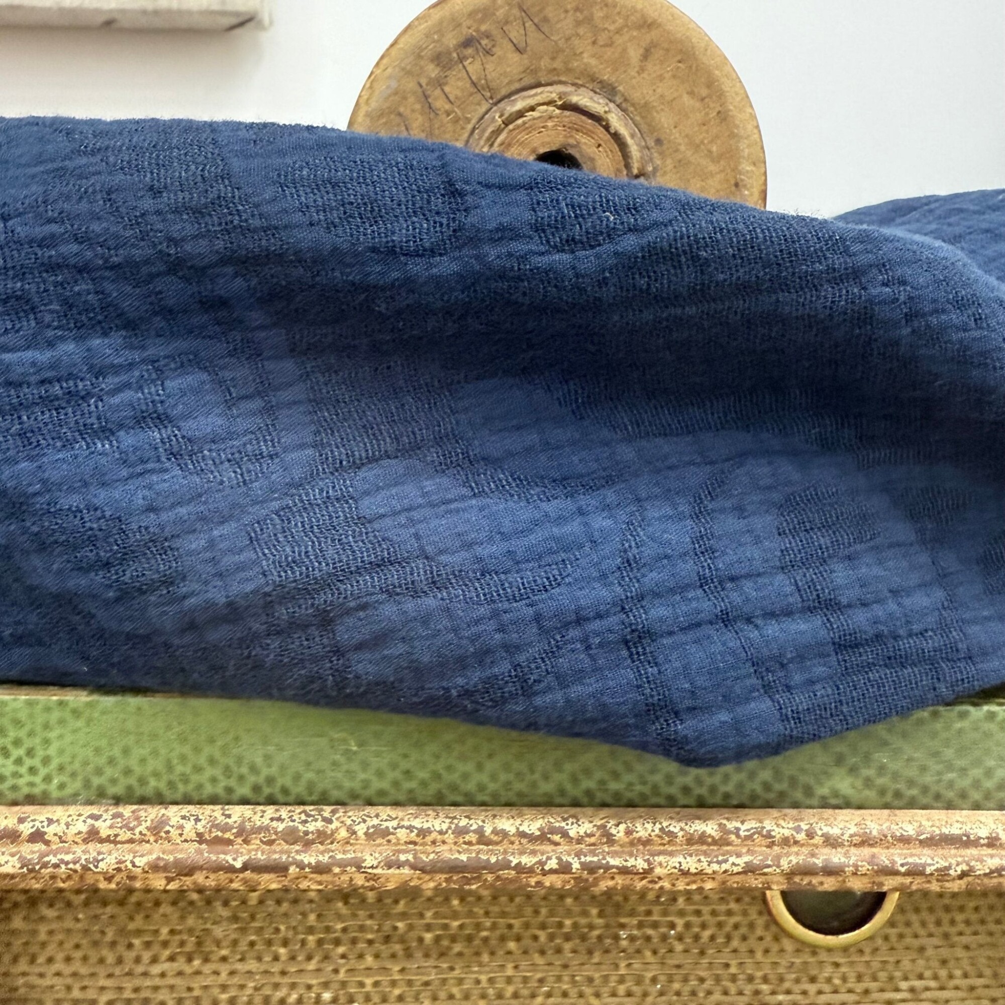 Blouse Naomie - Double gaze de coton/lin jacquard fleuri marine