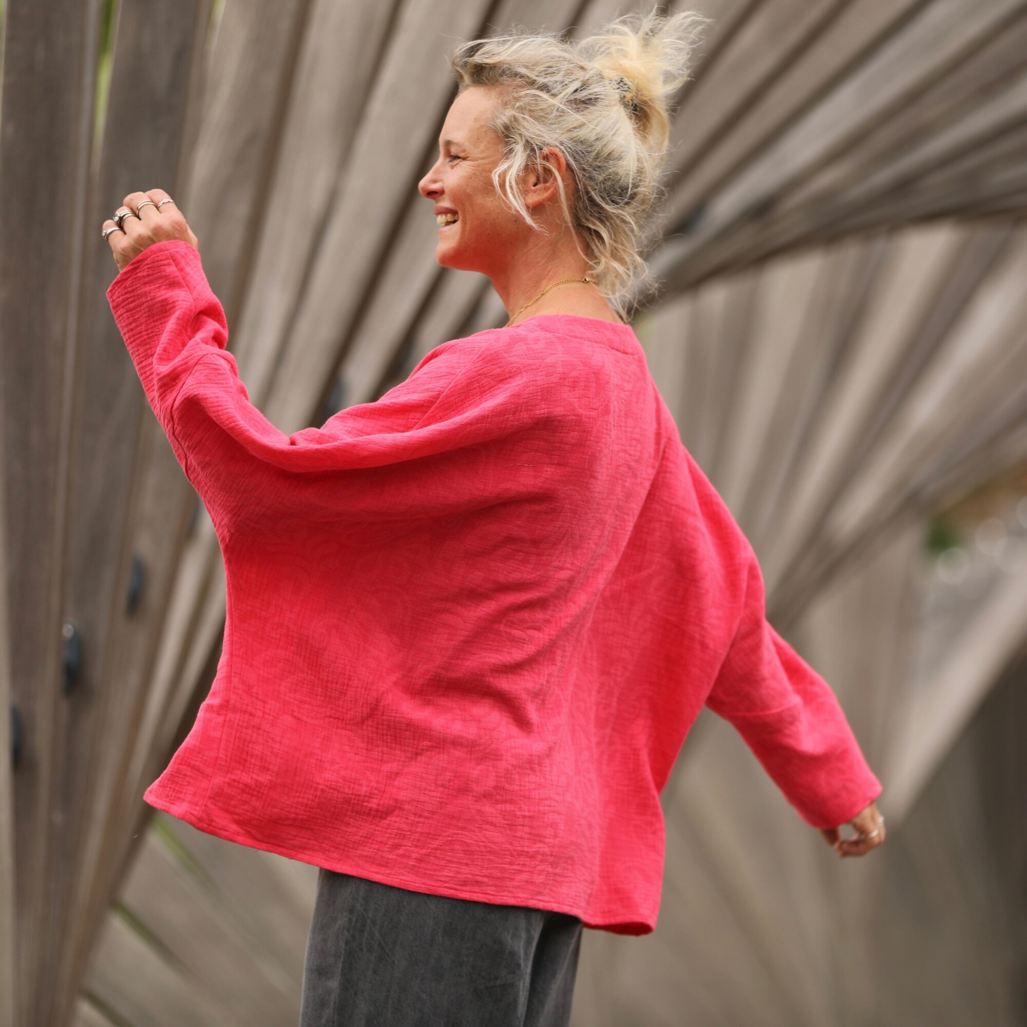 Naomie est une blouse raffinée au charme inspiré de l’esthétique japonaise. Sa silhouette généreuse la rend idéale pour toutes les morphologies, du XS au XXL, elle peut se porter avec de l'ampleur pour un effet décontracté.