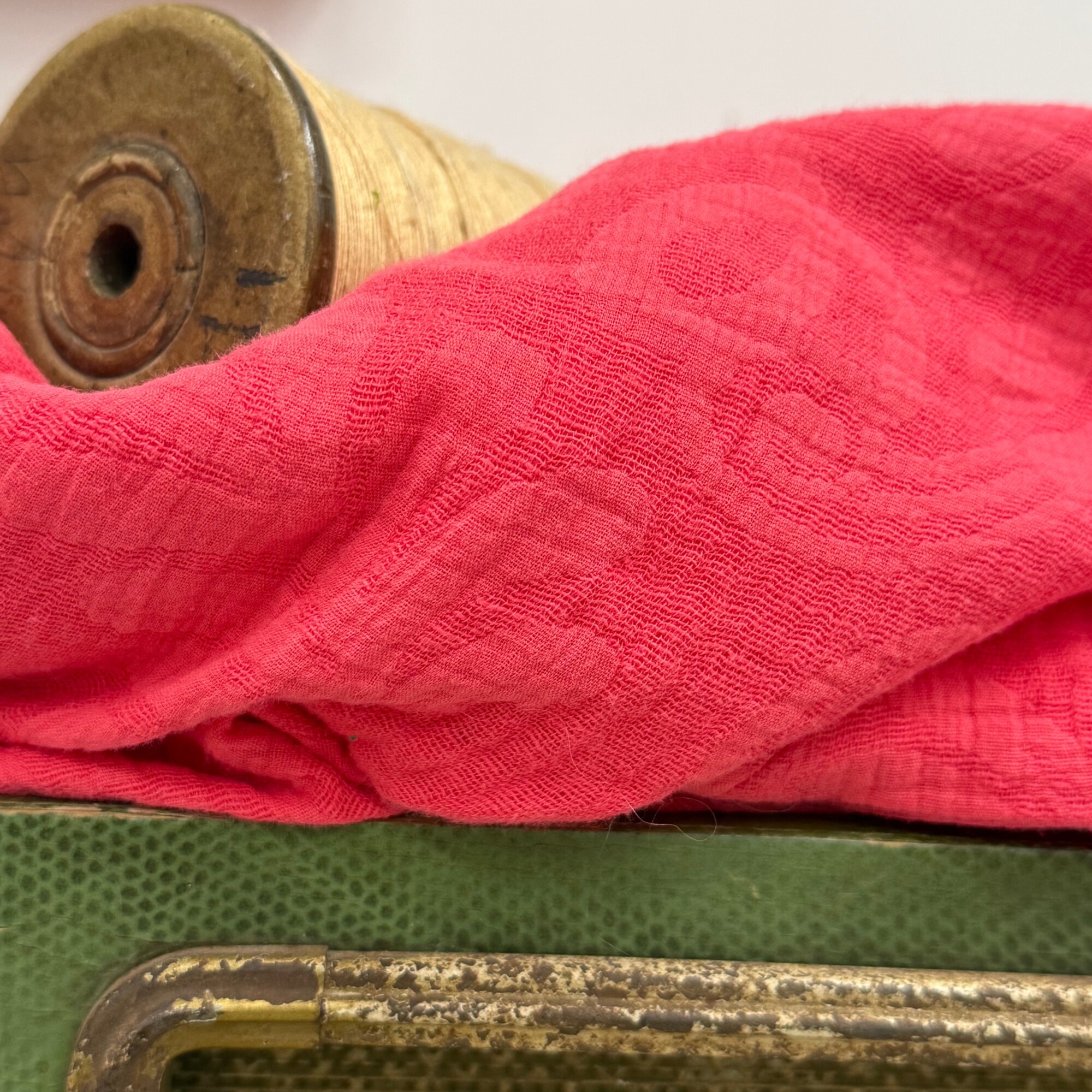 Blouse Naomie - Double gaze de coton/lin jacquard fleuri rose gourmand