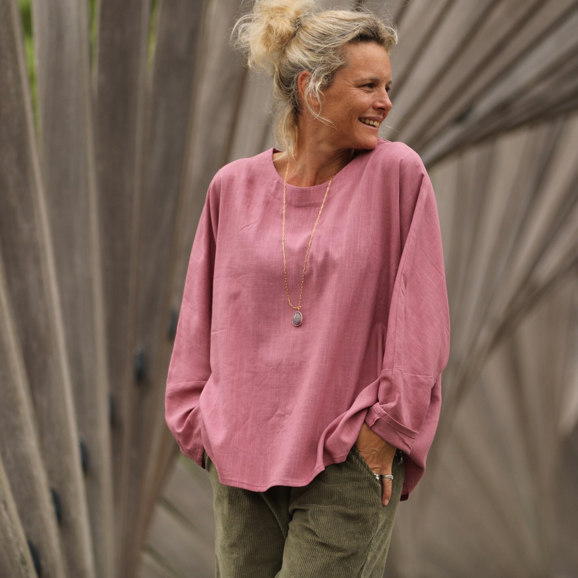Naomie est une blouse raffinée au charme inspiré de l’esthétique japonaise. Sa silhouette généreuse la rend idéale pour toutes les morphologies, du XS au XXL, elle peut se porter avec de l'ampleur pour un effet décontracté.