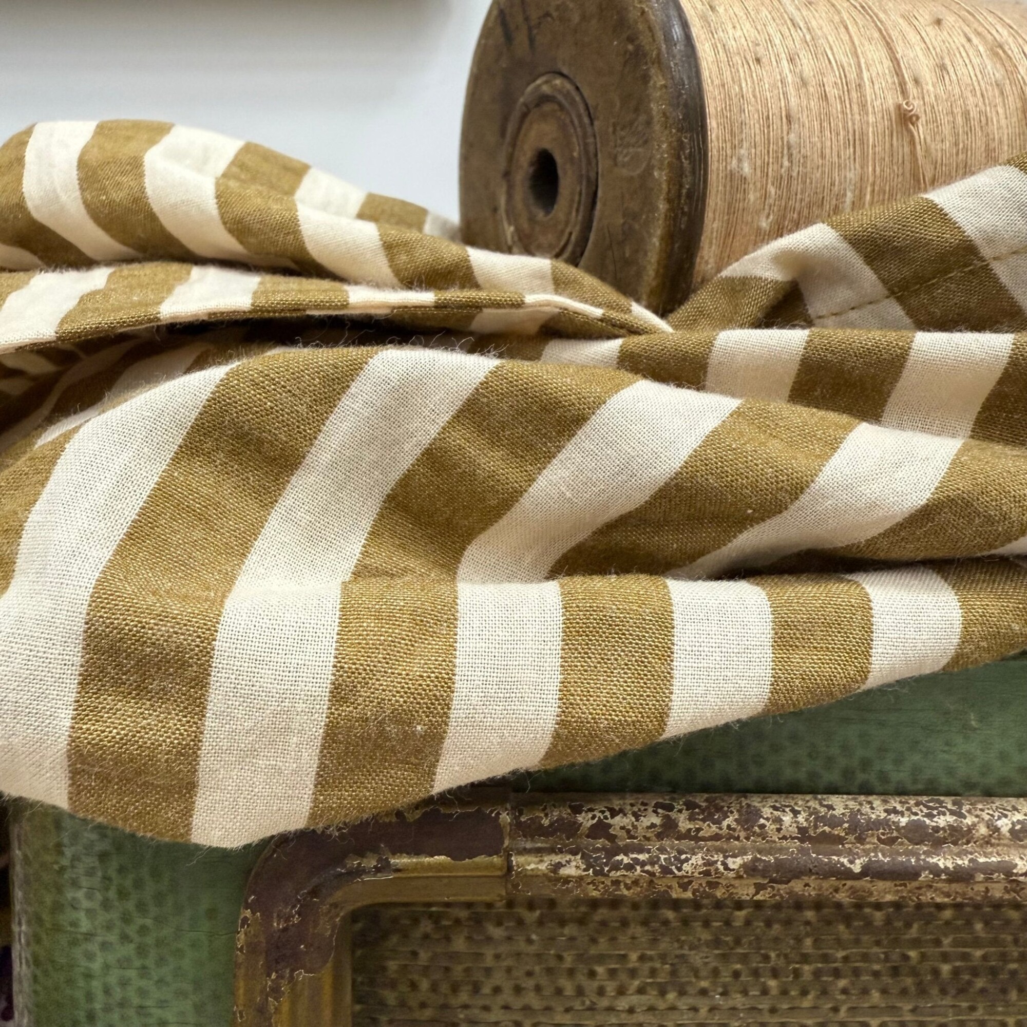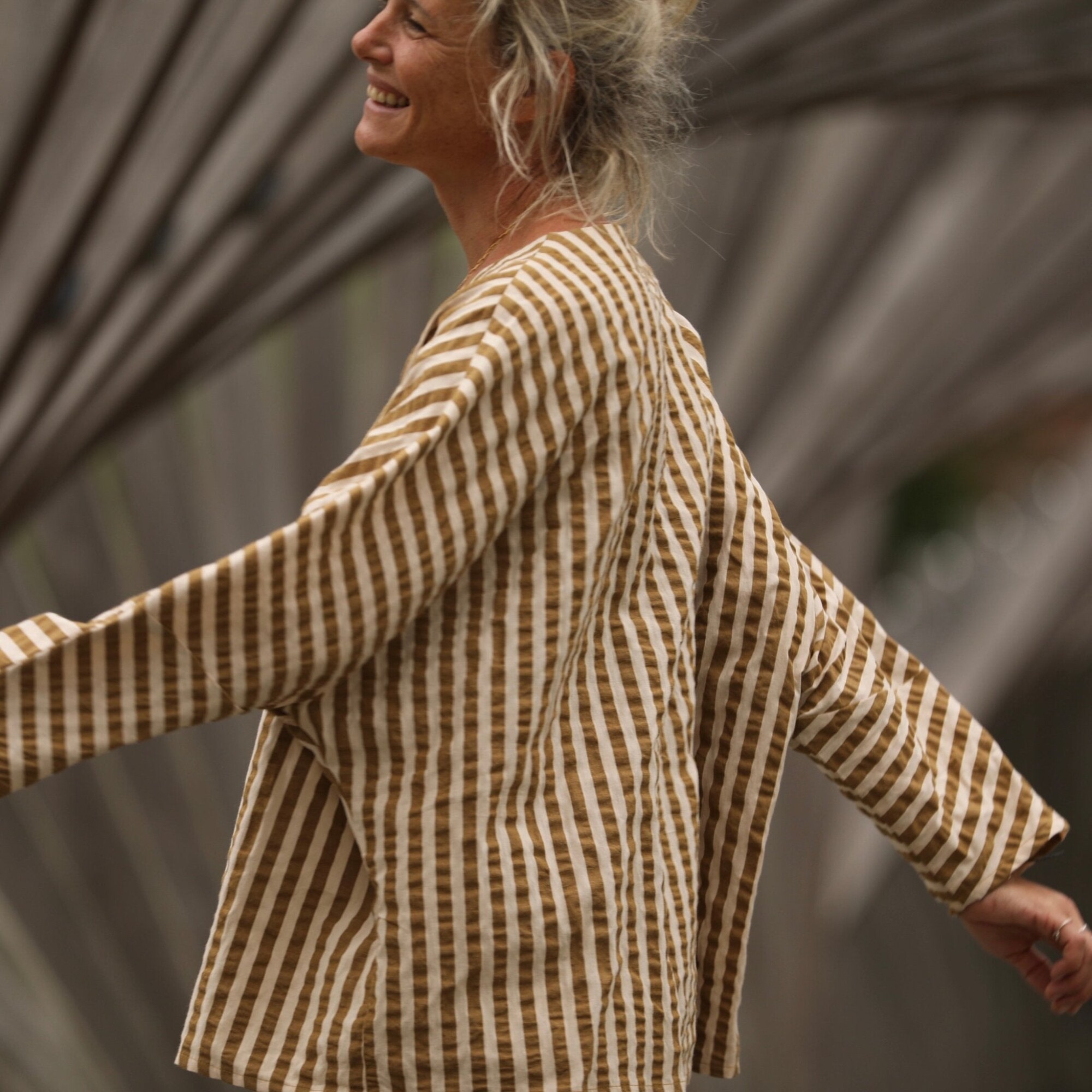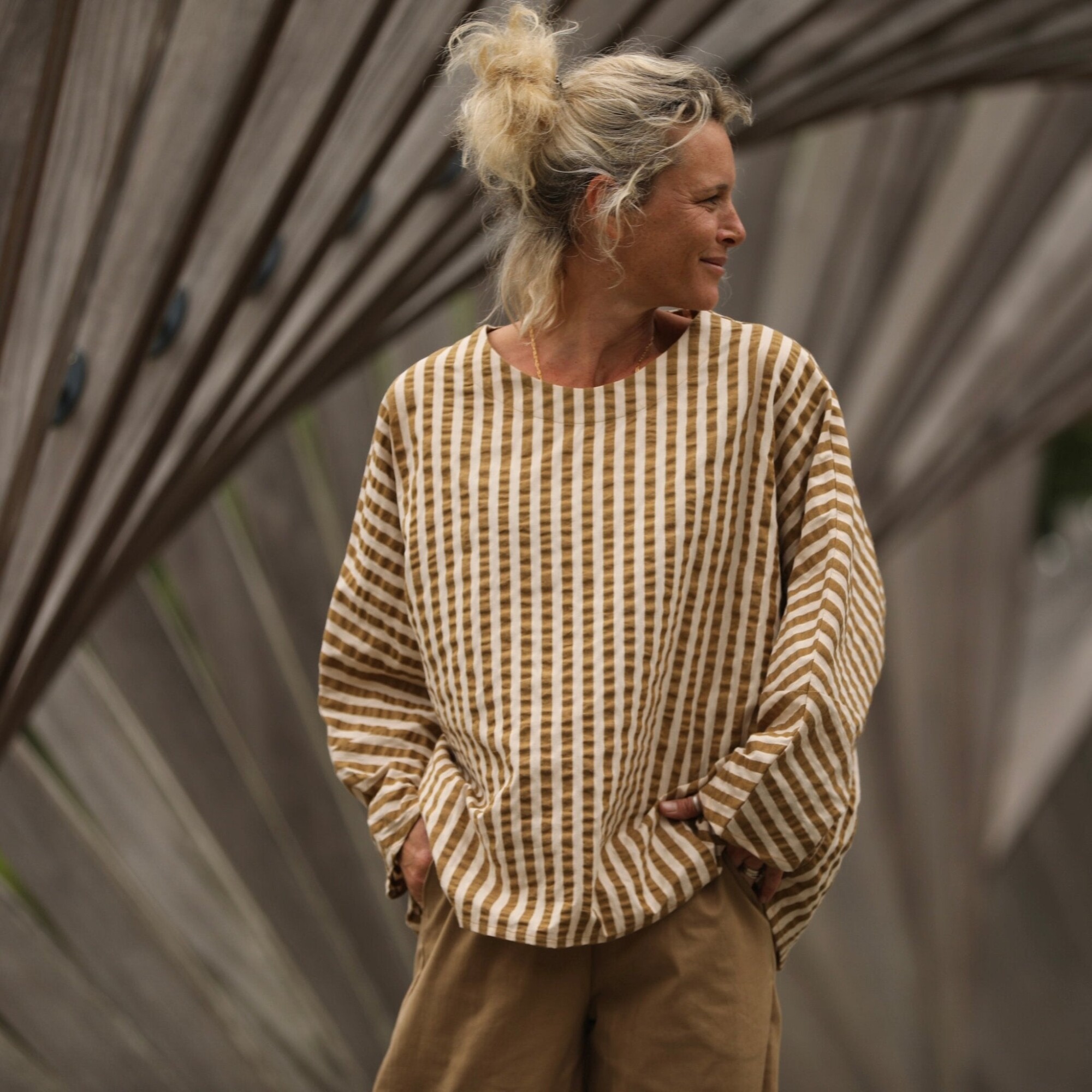 Blouse Naomie - Seeresucker de coton rayé camel/ivoire