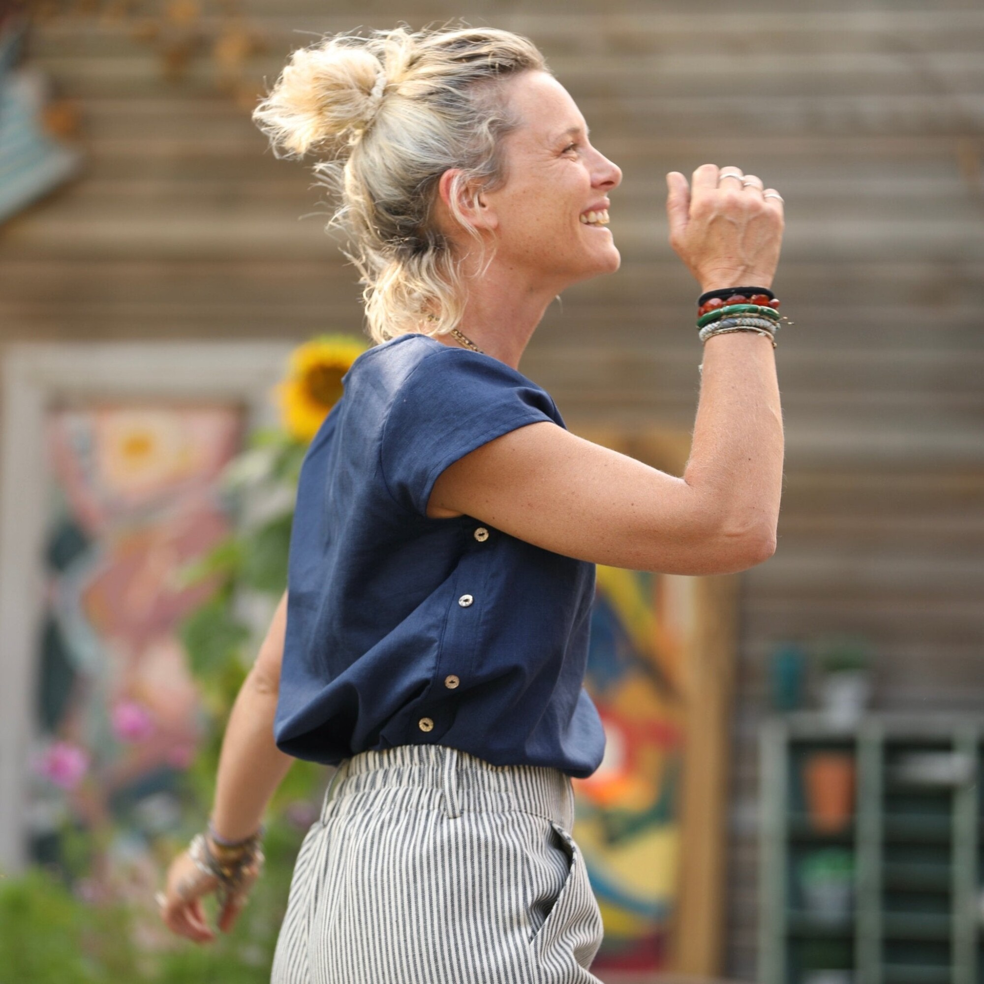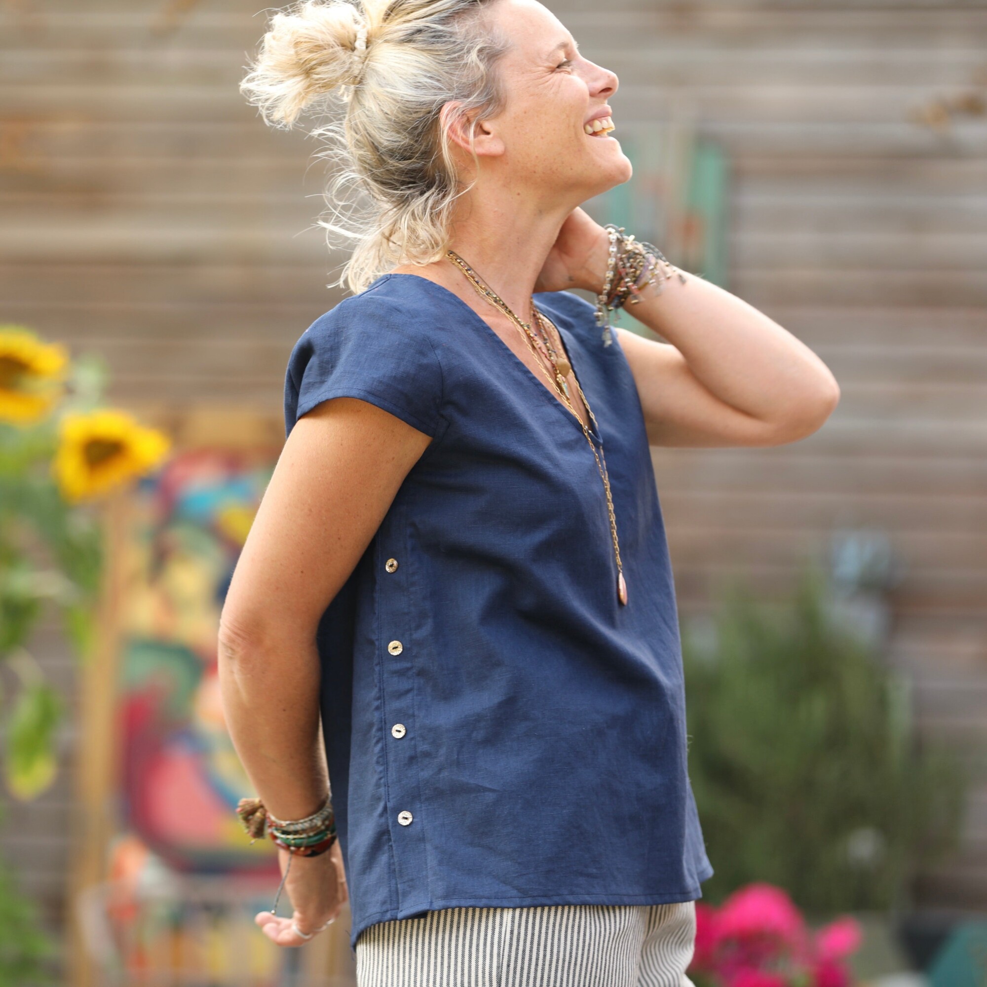 Une blouse fluide, légère et pleine de caractère Avec Sidonie, on retrouve tout ce qu’on aime chez Quintessence : une coupe fluide et bien pensée, une matière naturelle au tombé parfait, et un petit détail bijou qui fait toute la différence. La blouse épouse délicatement le buste, s’évase légèrement sur les hanches, et crée une silhouette aérienne qui laisse la peau respirer.