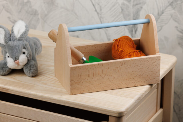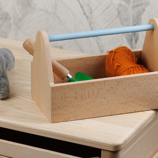 La petite boîte à rangement permet aux petits d'y ranger leurs jouets préférés, un objet idéal selon les méthodes Montessori et fabriqué entièrement en bois massif.