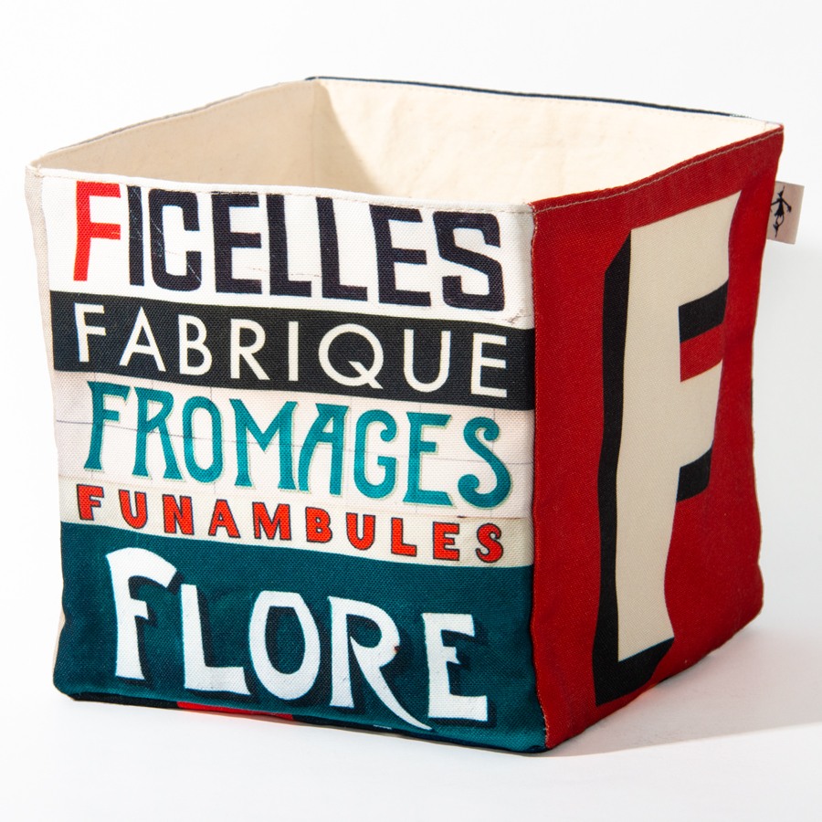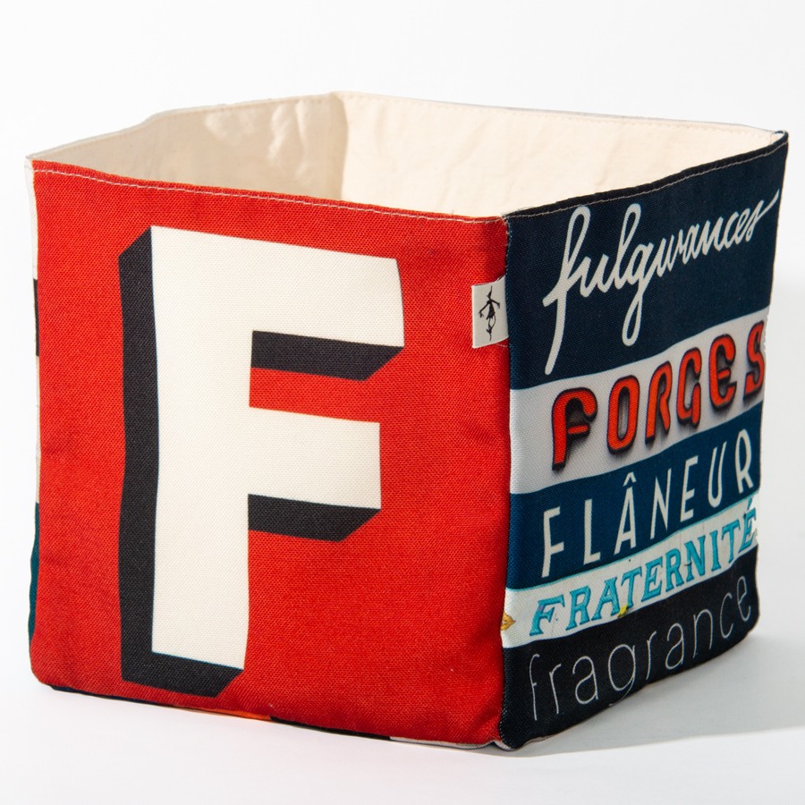 Dans la boite de rangement lettre F, les Funambules Fabriquent du Fromage ! Jeu de mots jeu de lettres, composez vos messages avec ces boites en tissus alphabet