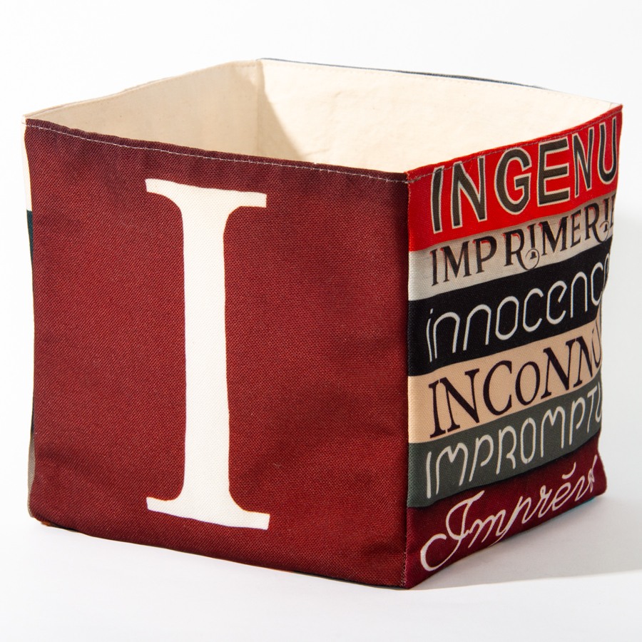 Dans la boite de rangement lettre I, un Ingénu Impromptu s'est Installé dans un Intervalle Idéal ! Composez vos messages avec ces boites en tissus alphabet.