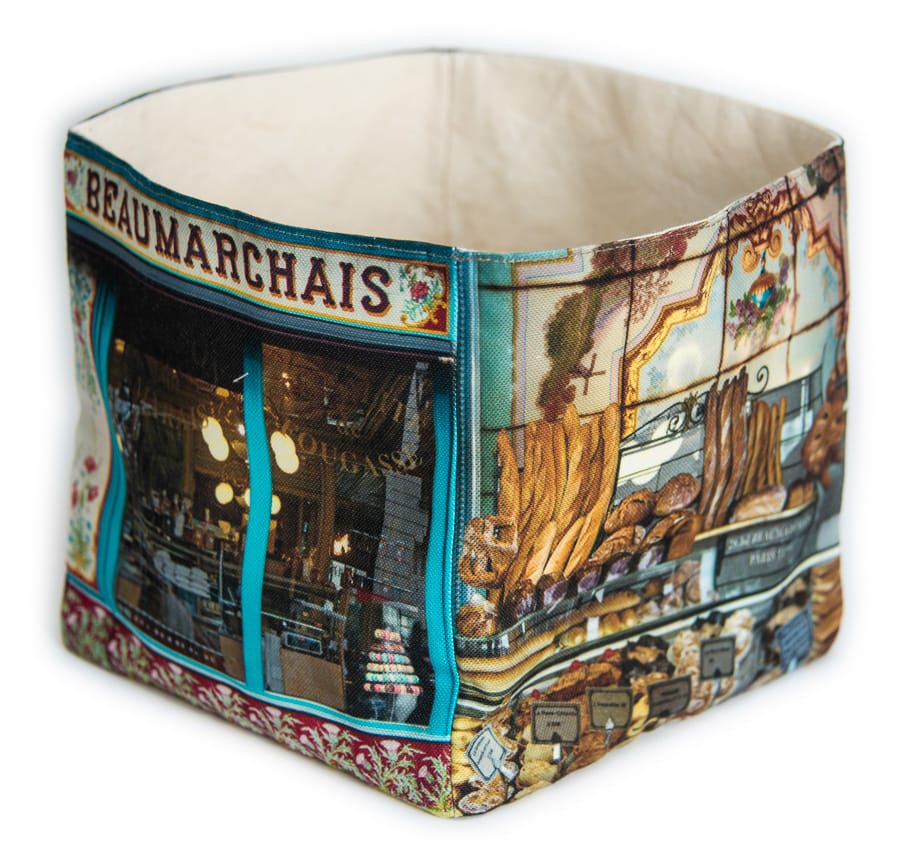 Cette boite de rangement pour la maison est imprimée de photos de cette magnifique Boulangerie 28 de la créatrice Maron Bouillie dans la collection souvenir Paris rétro.