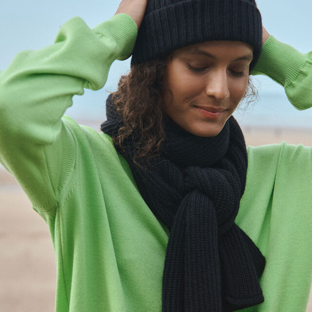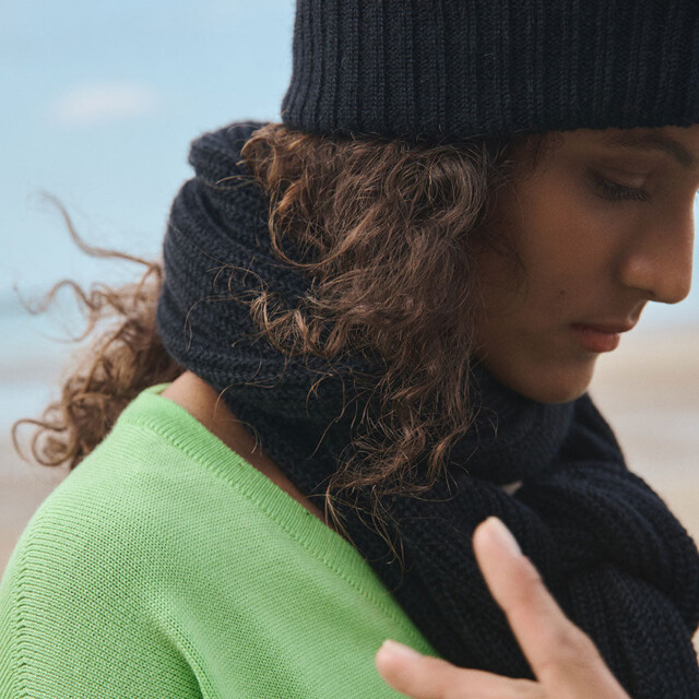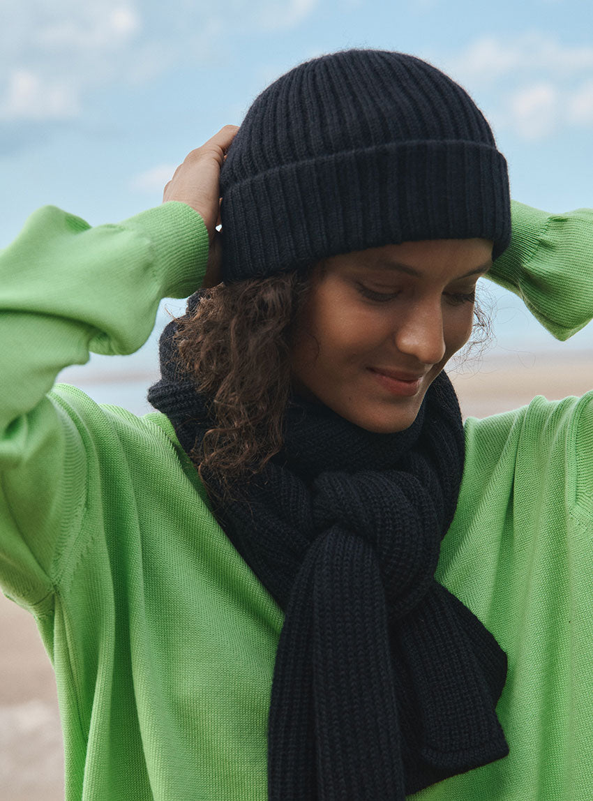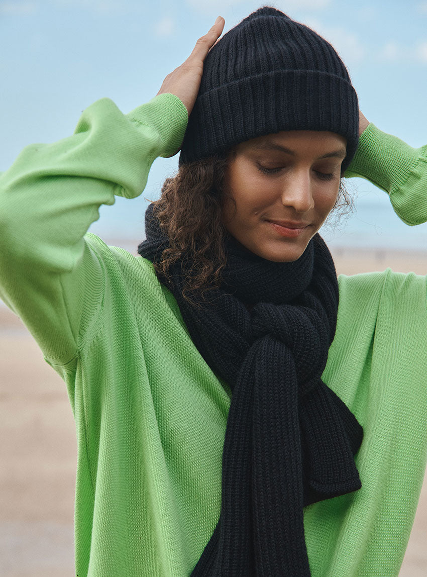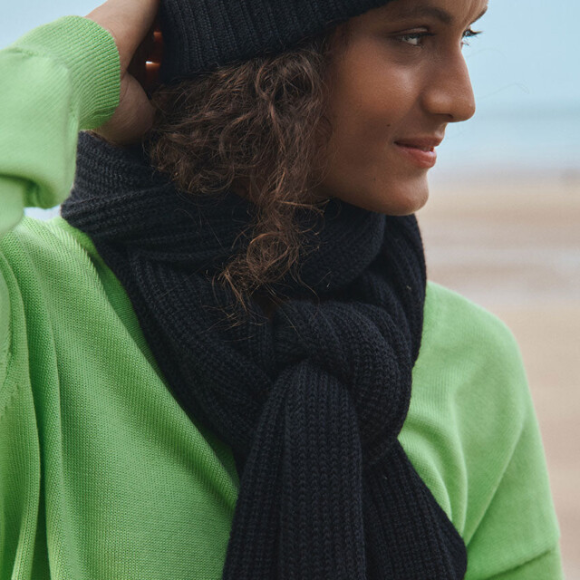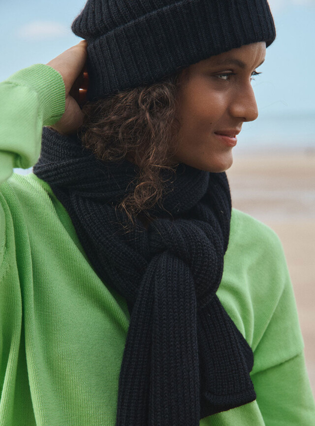 Le bonnet Ambre en noir combine chaleur et style dans une maille côtelée douce en mohair. Son double revers assure un maintien parfait tout en ajoutant du volume pour une allure moderne. Un accessoire indispensable pour traverser l’hiver avec élégance sans compromis sur le confort