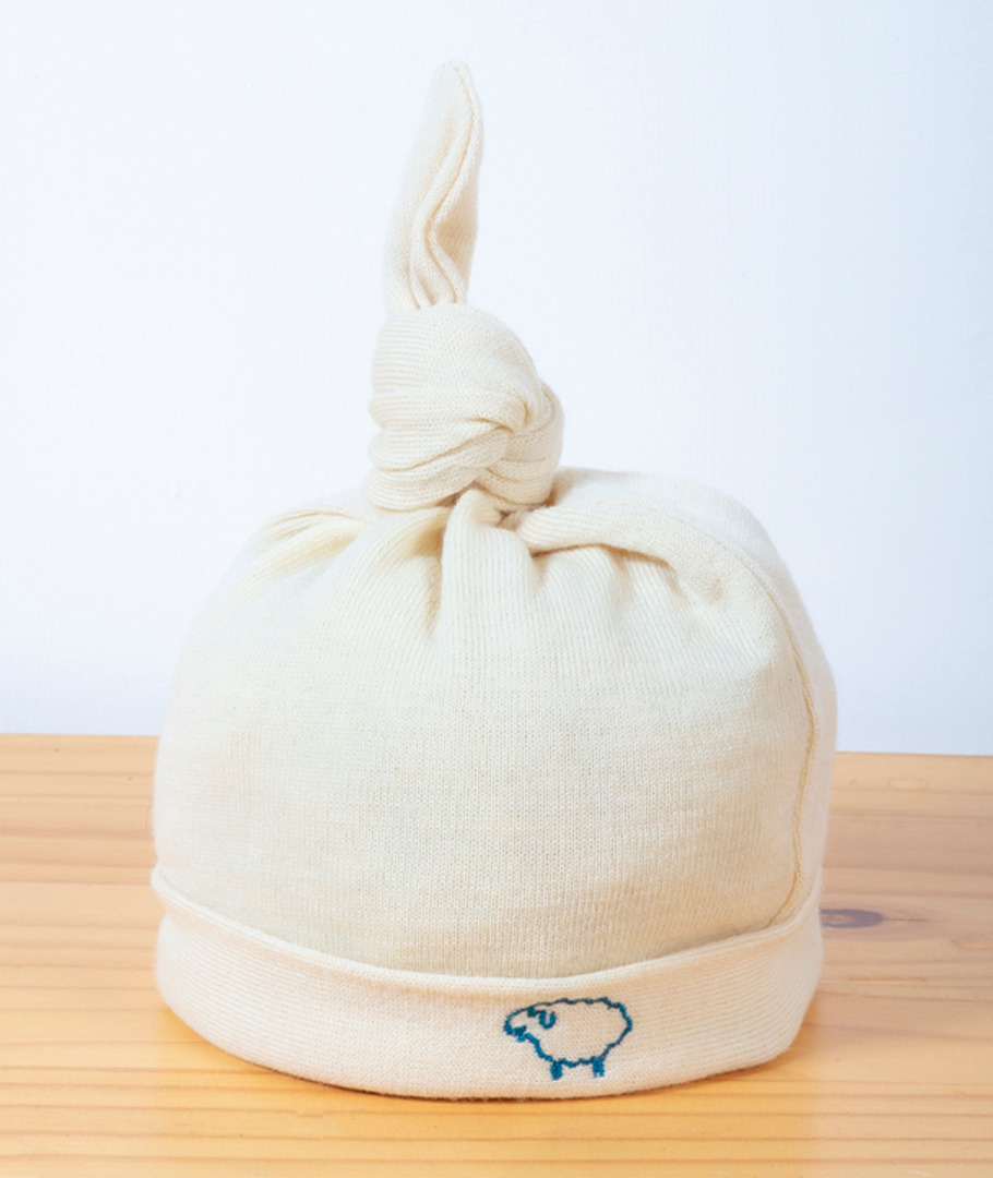 Pour les bébés de 6 à 12 mois. Taille unique pour un tour de tête d'environ 43 cm. 100% laine mérinos certifiée GOTS.