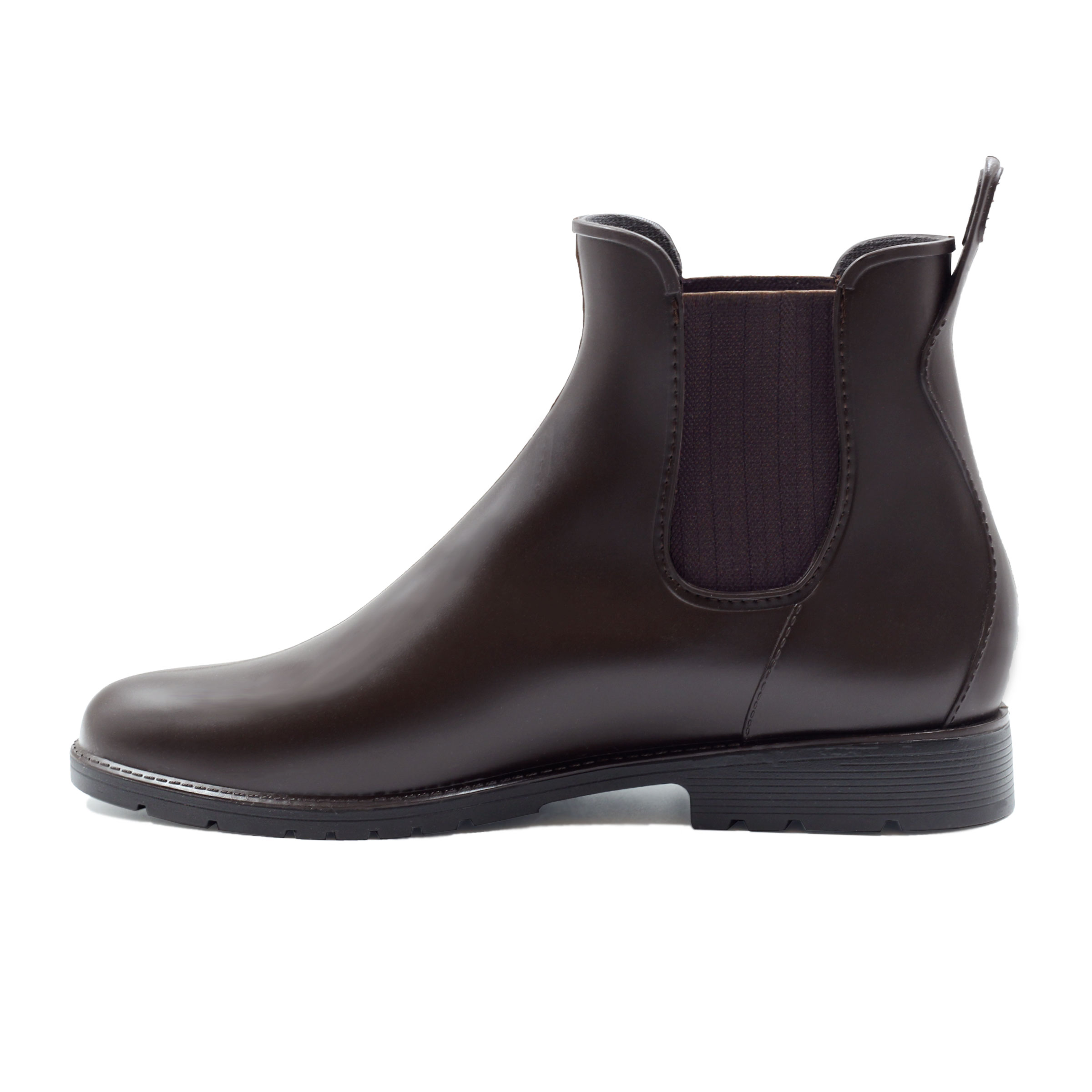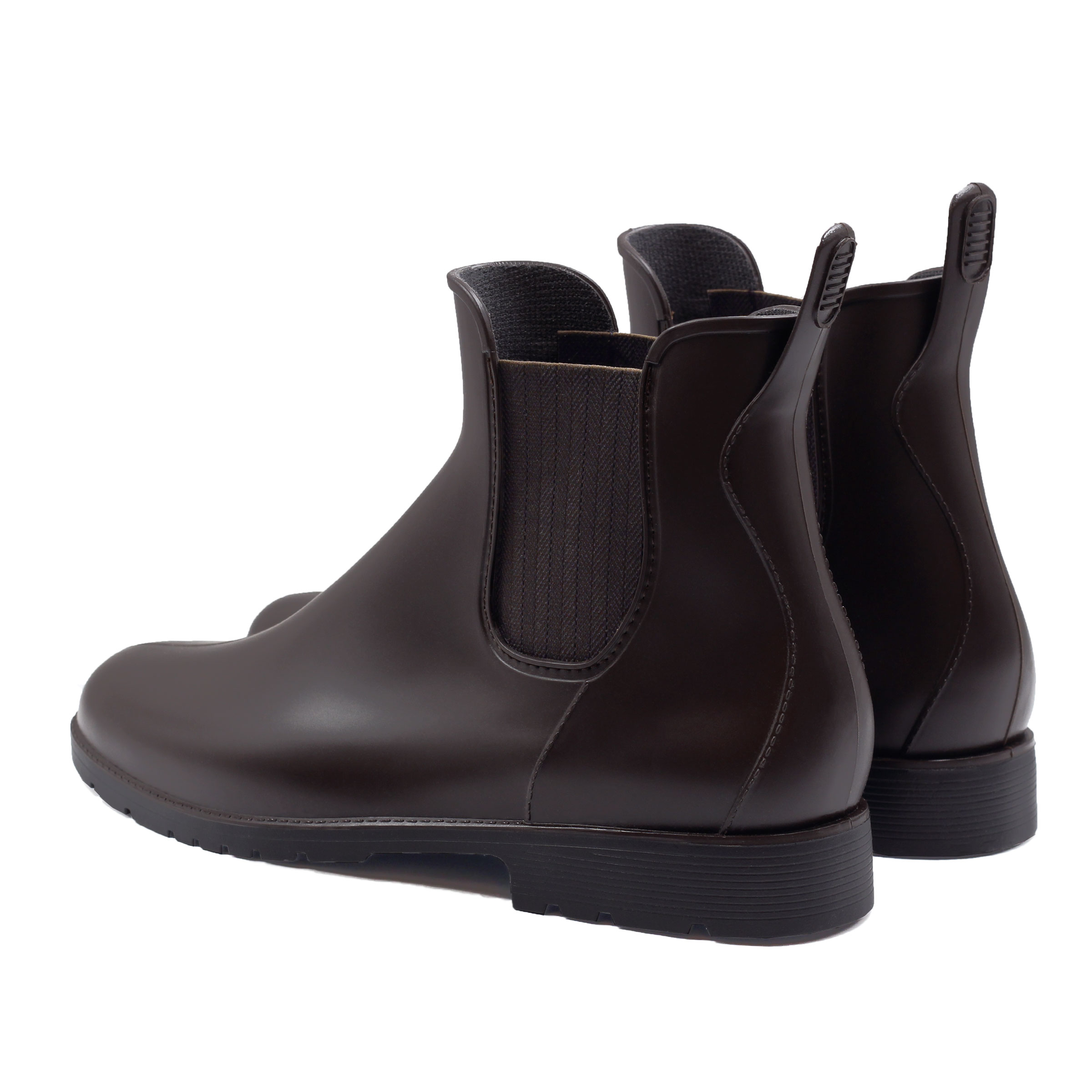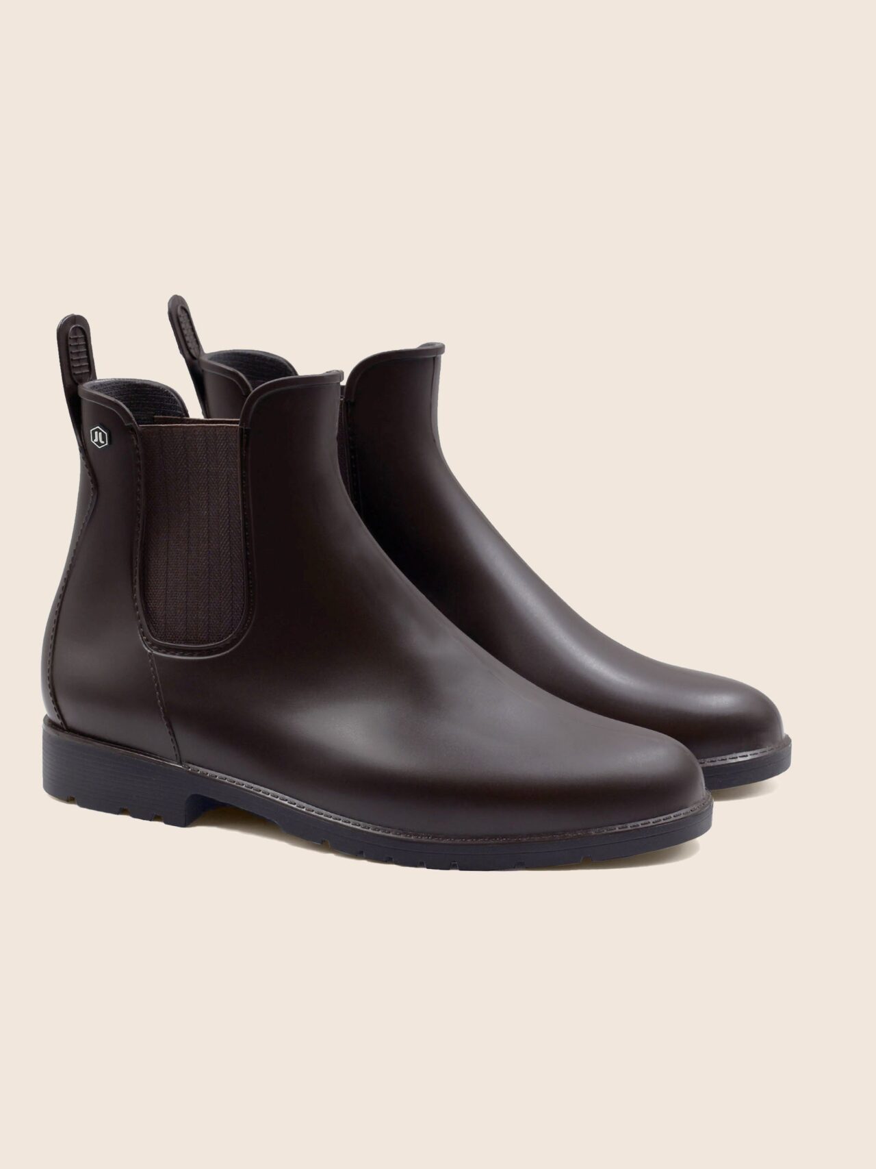 Boots de pluie homme en PVC recyclable marron, fabriquées en France. Aussi appelées bottines Chelsea imperméables ou wellies homme, ces boots de pluie au design Chelsea sont idéales pour affronter les intempéries avec élégance. PVC noir 100 % recyclable. Empiècements élastiques marron motif chevron. Doublure textile doux. Languette arrière pour un chaussage facile. Rivet hexagonal PVC. Semelle extérieure crantée PVC. Hauteur de la bottine depuis le talon : 14,5 cm. Hauteur du talon : 3 cm. 100 % fabriquées en France : piquage, montage et finition. PVC 100 % recyclable d'origine France. Emballage 100 % fabriqué au Portugal, certifié FSC et PEFC, réemployable et recyclable. Conforme aux normes REACH. Pour ce modèle, prenez votre pointure habituelle. Si vous êtes entre 2 pointures, prenez la pointure inférieure. Nettoyez à l'eau claire ou légèrement savonneuse, séchez à l'air libre.