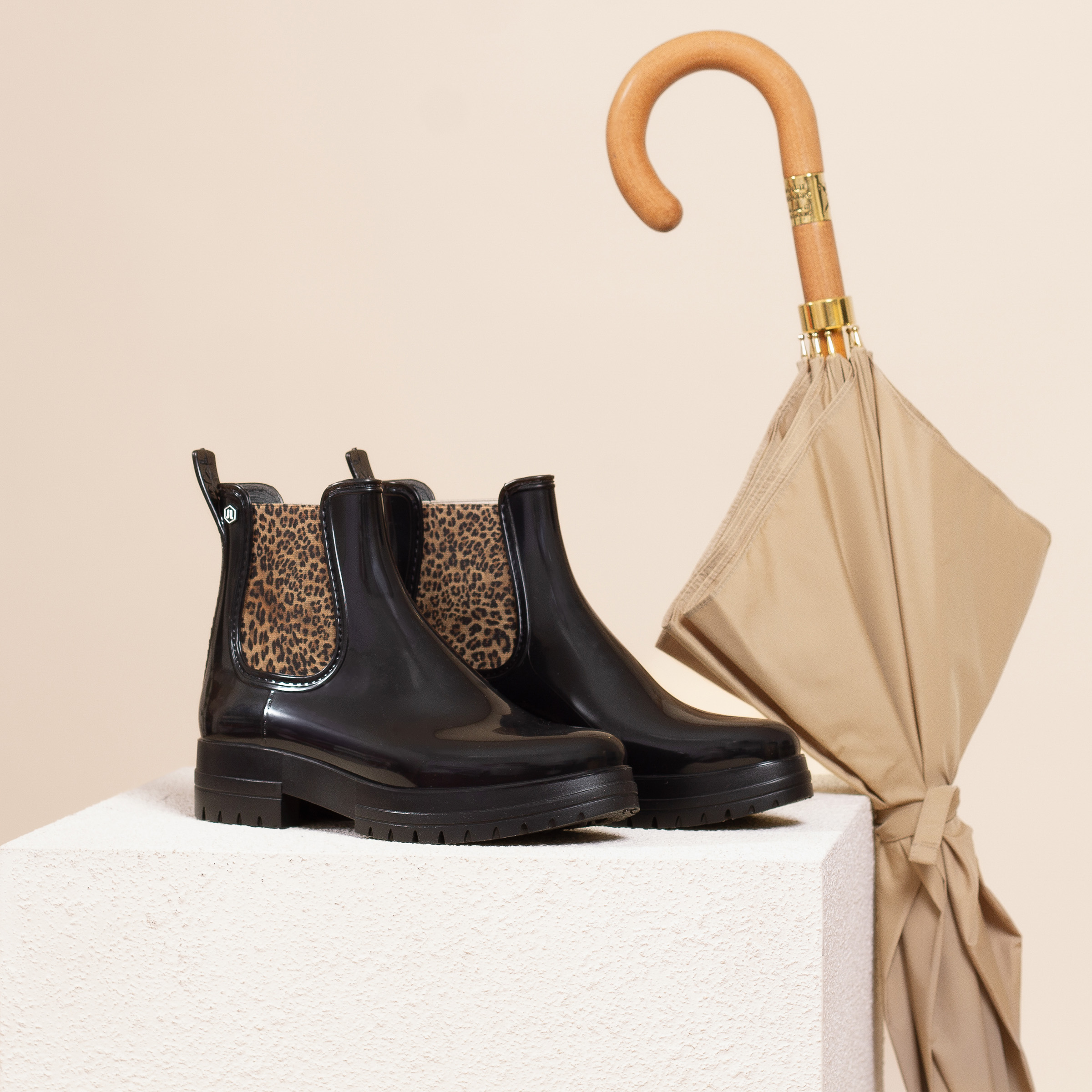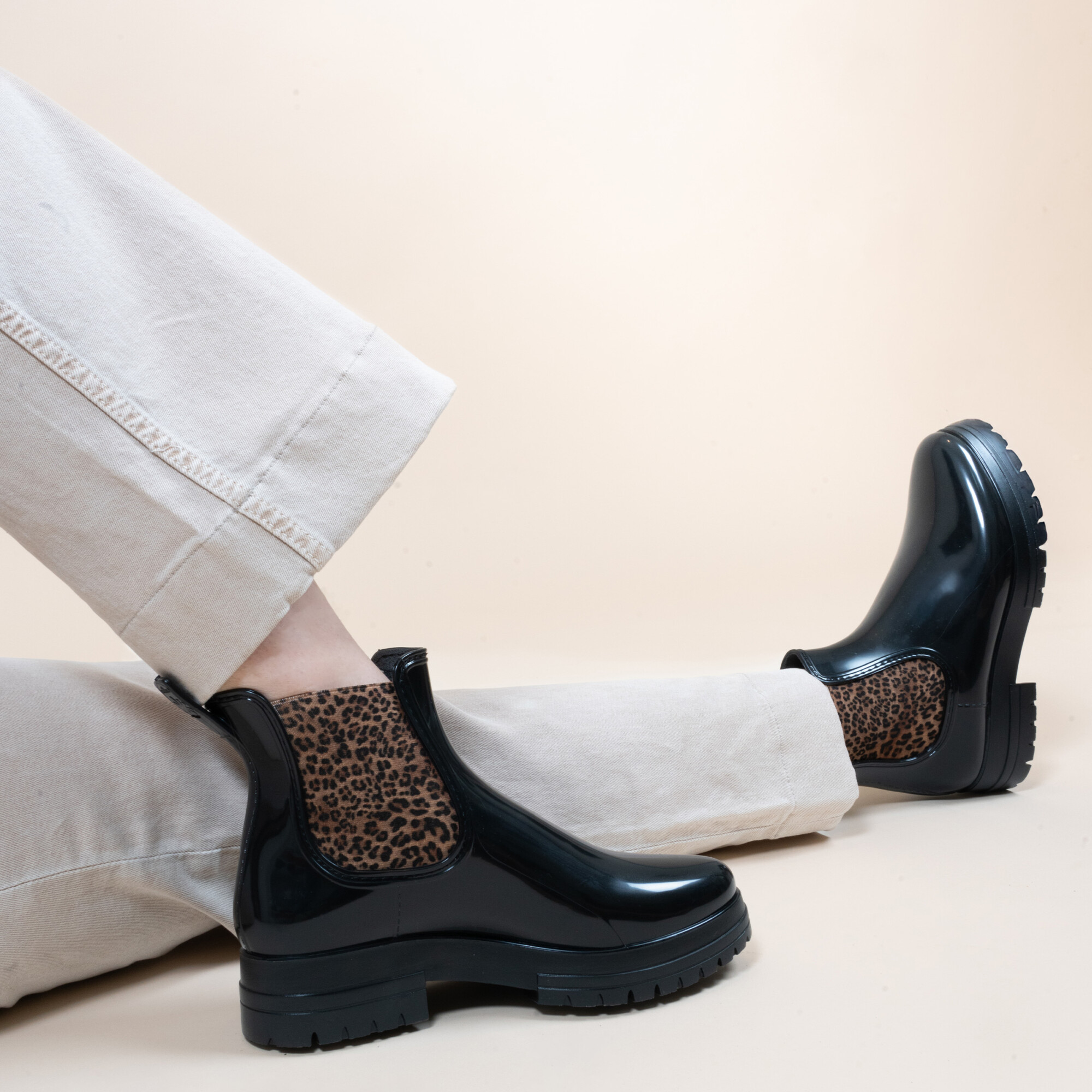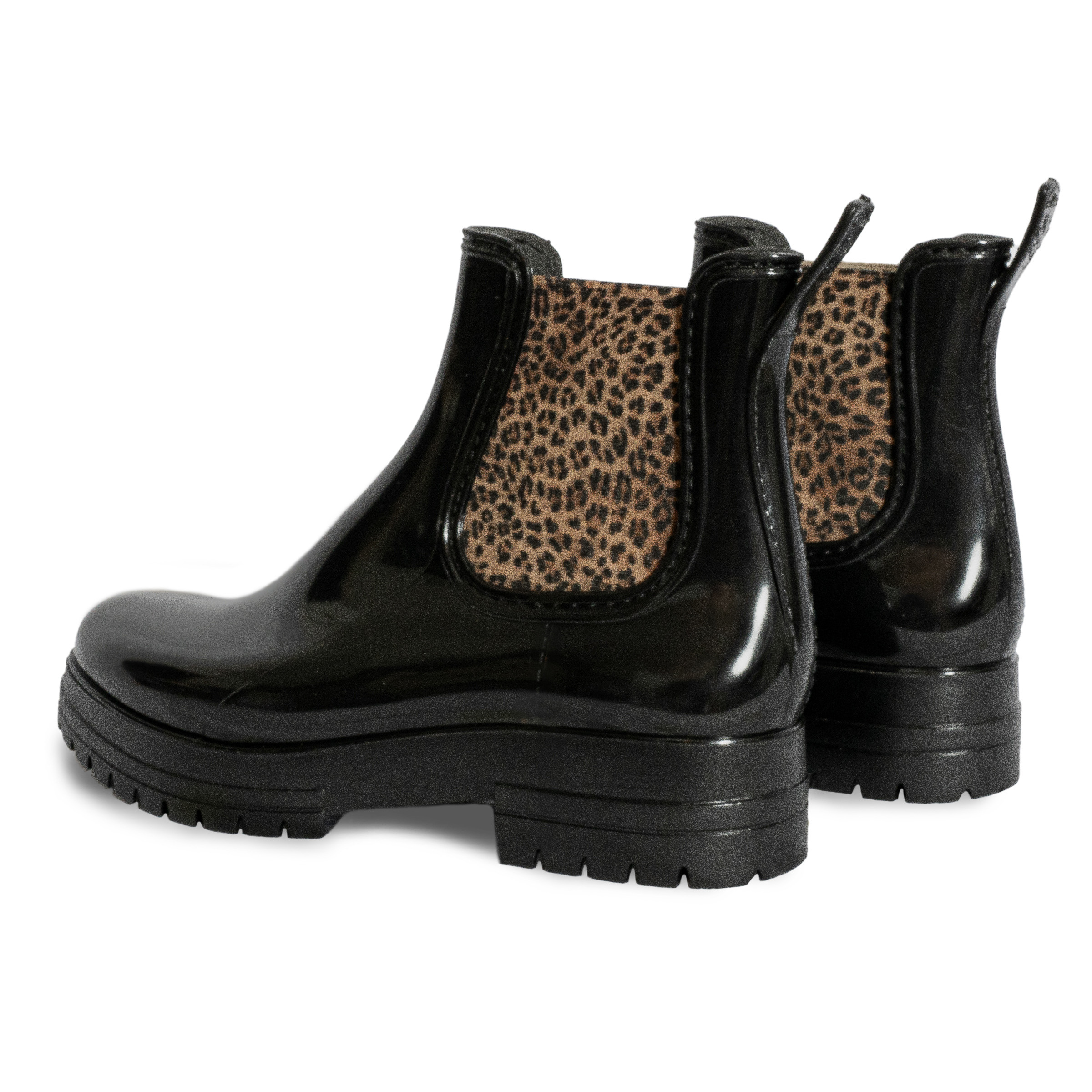Bottines de pluie crantées noir léopard