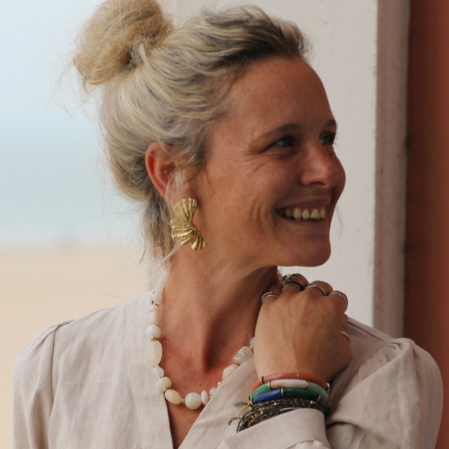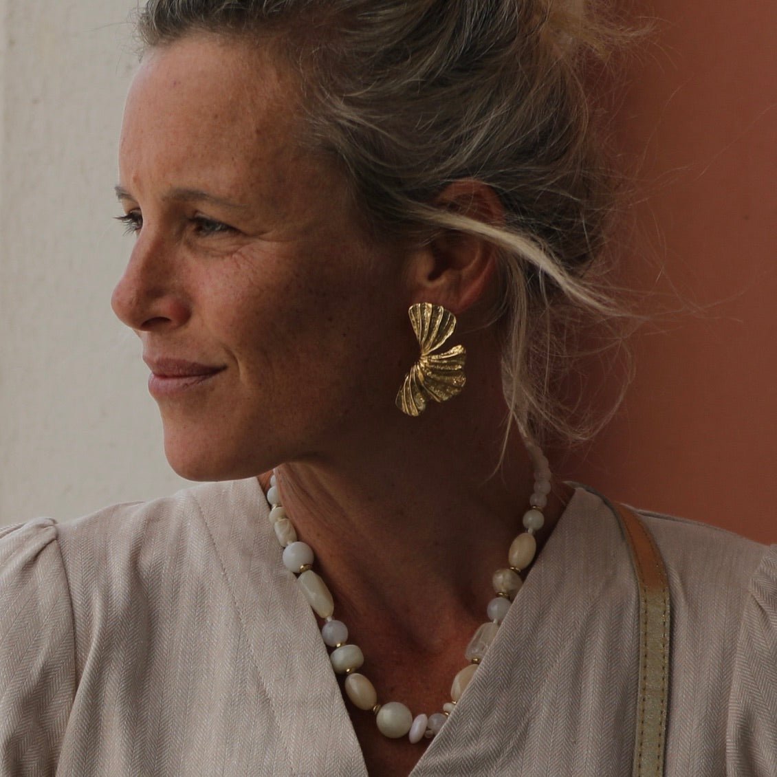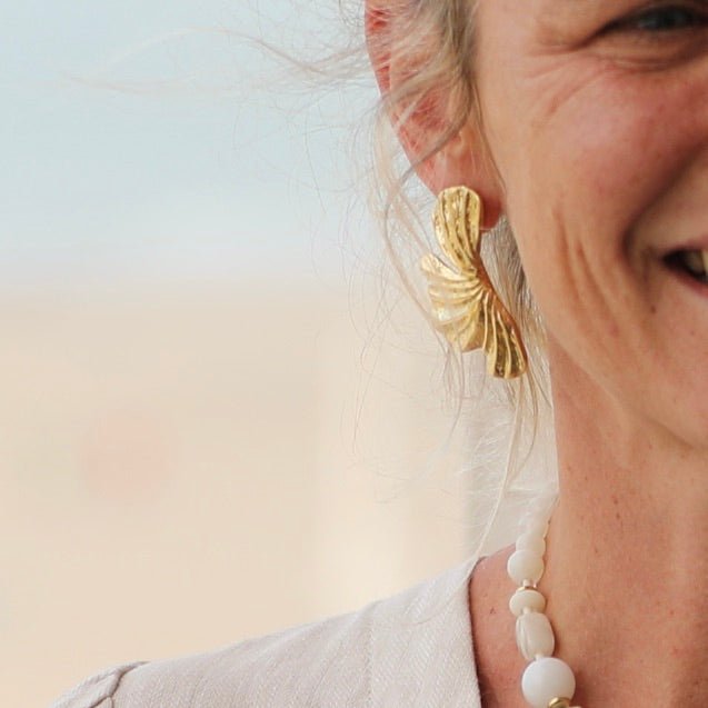 Les boucles Zéphir se dessinent comme un souffle léger : un motif fluide et texturé, entièrement doré, qui capte la lumière avec délicatesse. Fabriquées en acier inoxydable, elles allient élégance intemporelle et durabilité.