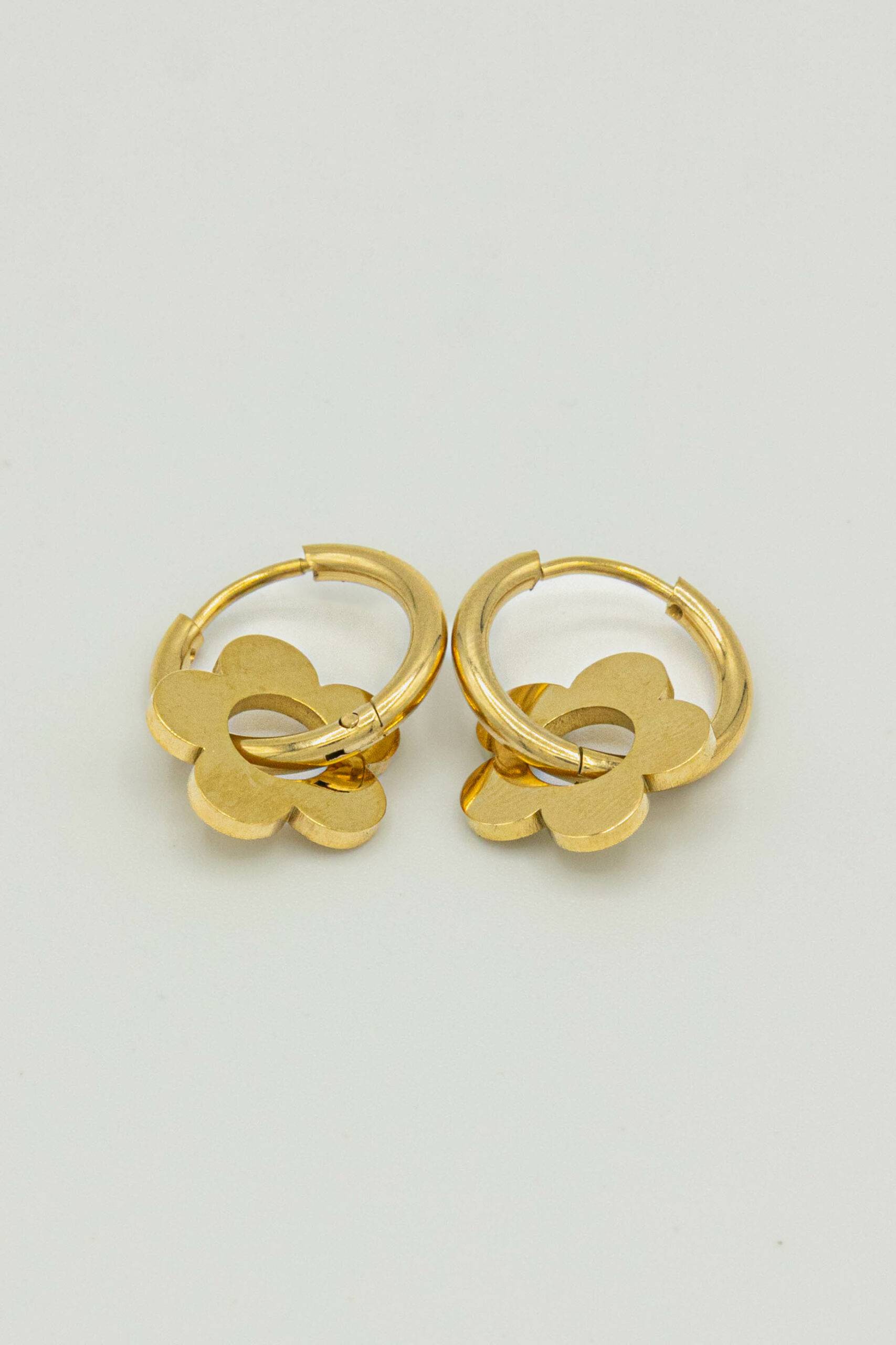 Du doré, brillant, on adore! Ces jolies créoles en acier inoxydable sont agrémentées d'une fleur amovible de la même matière. On aime leur originalité autant que leur style épuré.
