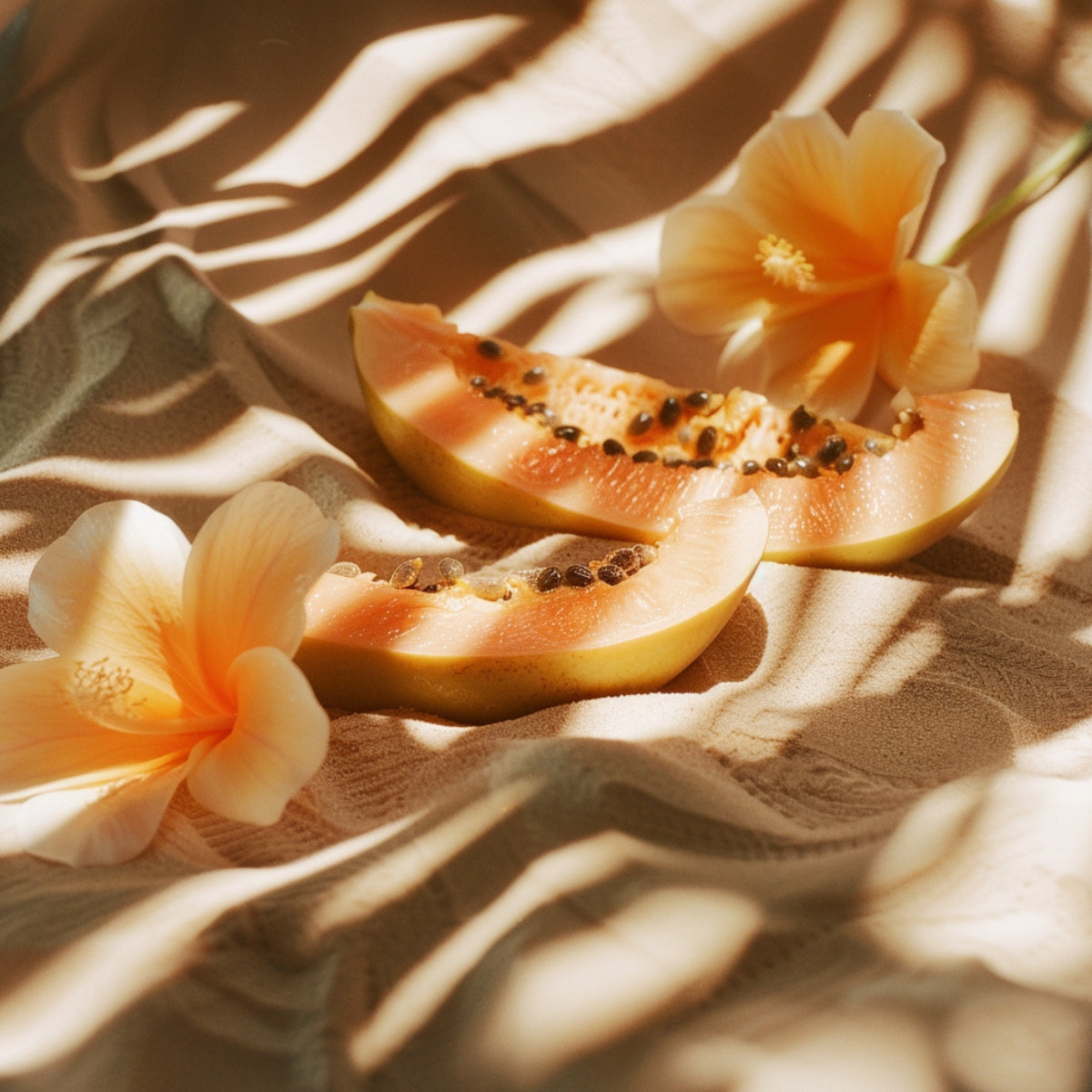SOLAIRE – EXOTIQUE – VIBRANTPar Cyrille CARLES Un parfum éclatant comme une escale sous les tropiques, les pieds plongés dans le sable chaud face à une mer turquoise. L’aubépine et l’accord floral ouvrent sur une douceur ensoleillée, bientôt enveloppées par la papaye, la noix de coco et une touche de caramel. En fond, la vanille et le musc diffusent une chaleur suave et sensuelle, pour un sillage résolument ensoleillé.