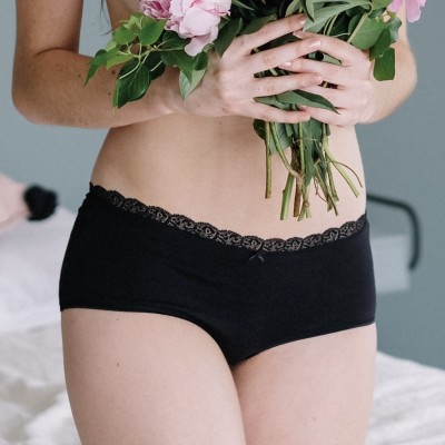 Vous rêviez du boxer parfait ? Voici Emma, irrésistiblement confortable et infiniment féminine !Ultra-confortable grâce à sa coupe emboitante Ultra-doux dans son coton biologique, épais et moëlleux à souhait Ultra-chic avec sa dentelle française noire et toute en finesse..