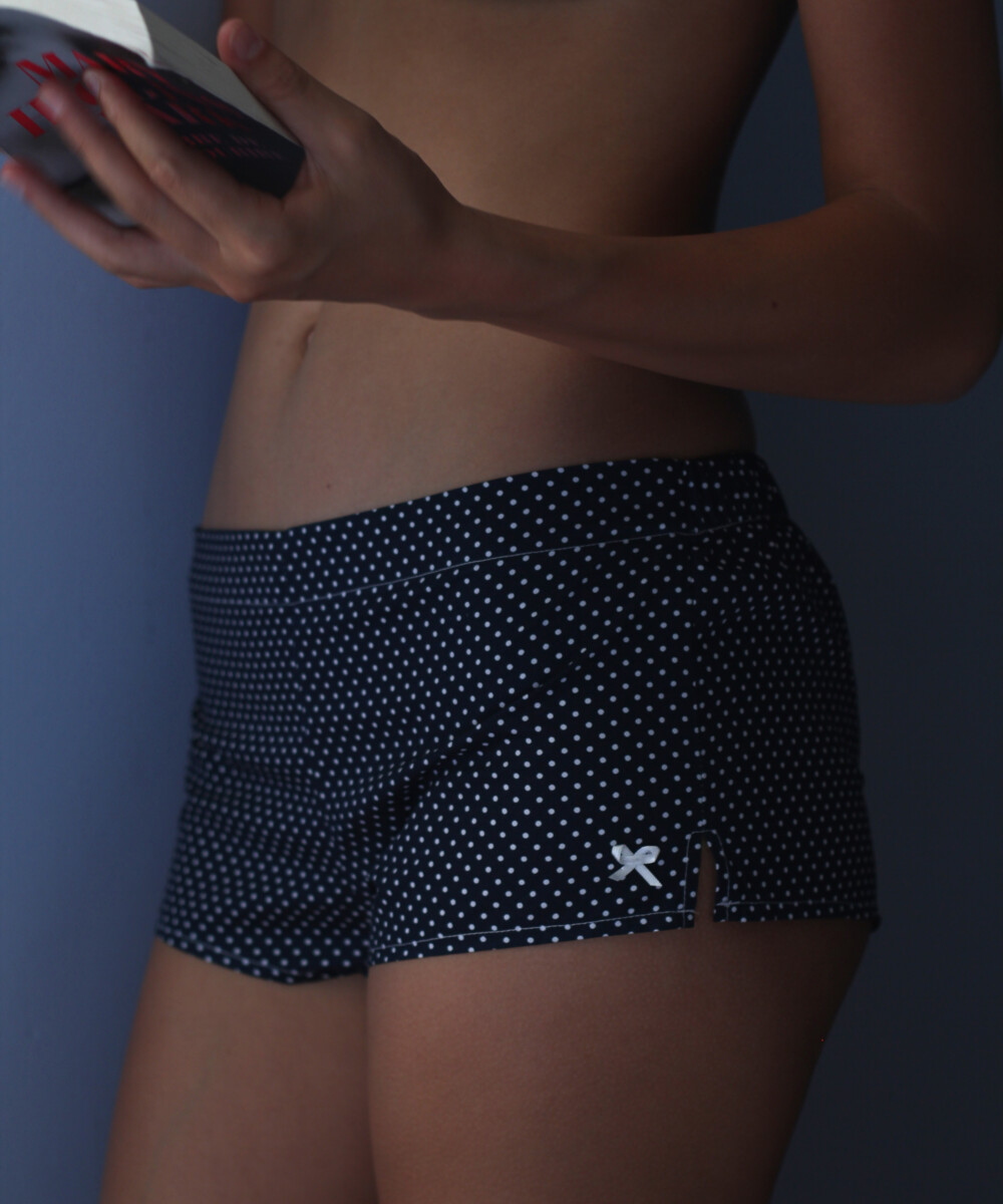 Fleurs Pois & Cie - Boxer femme 100% coton bio ou éco made in France - Bleu/Blanc