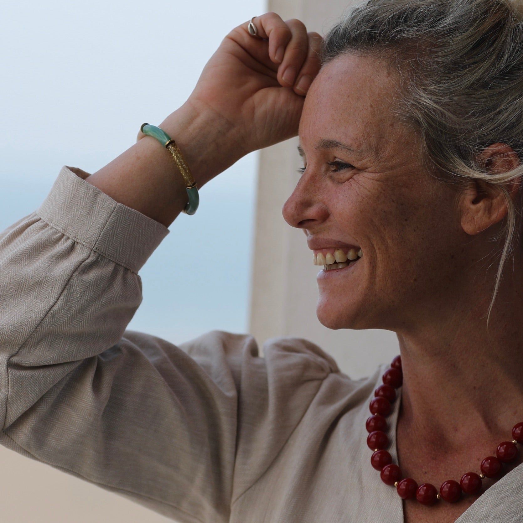 Le bracelet Halo associe des maillons en résine colorée à des pièces dorées, créant un contraste raffiné et lumineux. Une touche de couleur élégante, facile à porter seule ou en accumulation, pour sublimer chaque tenue.