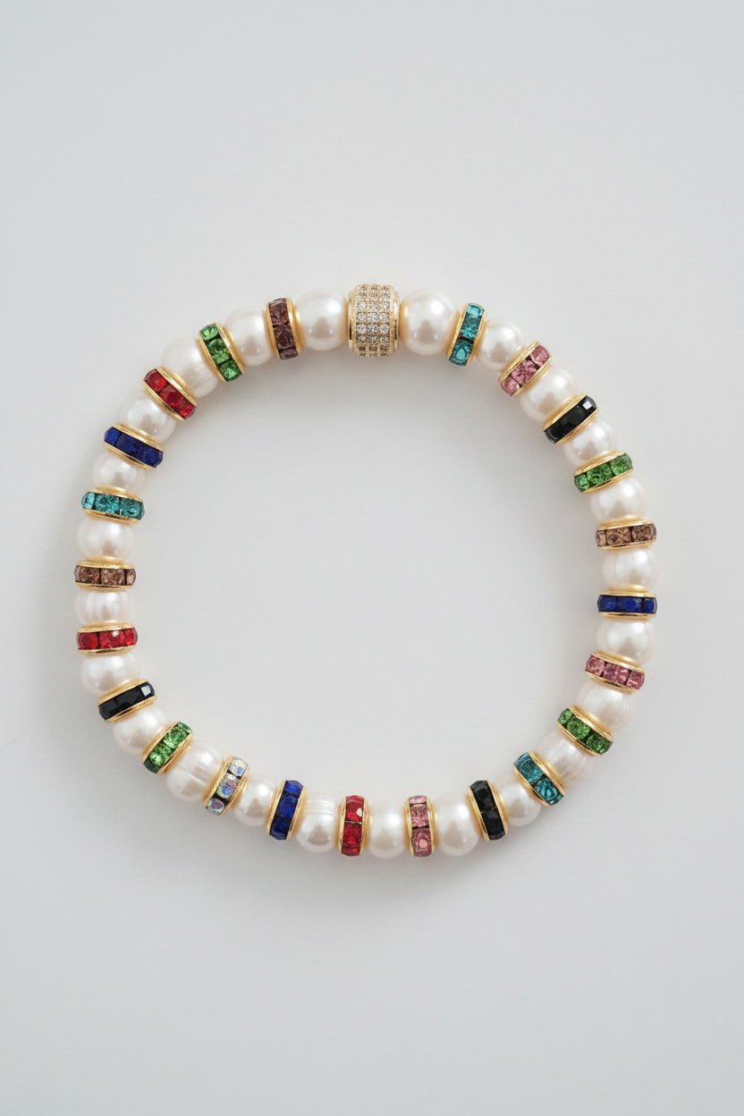 Bracelet Madame Bovary Perles de Culture et Diamants Multicolores