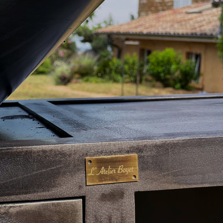 Vous souhaitez réaliser un devis sur mesure pour le Brasero Fournaise ? Demande de devis Votre Brasero Fournaise Sur-Mesure Afin de réaliser votre brasero sur-mesure, complétez le formulaire ci-dessous. Je reviendrai vers vous très prochainement pour un devis personnalisé ! Nom - Prénom Téléphone E-mail Ville Dimensions caisson Dimensions plancha Hauteur totale Options Couvercle Acier Roues Billot de Boucher Tiroir à cendre Finitions Acier Acier Peint Acier Vernis Acier Rouillé et Vernis Informations supplémentaires Envoyer Brasero haut de gamme Ce brasero en acier haut de gamme est le résultat du savoir-faire artisanal de l'atelier Boyet.