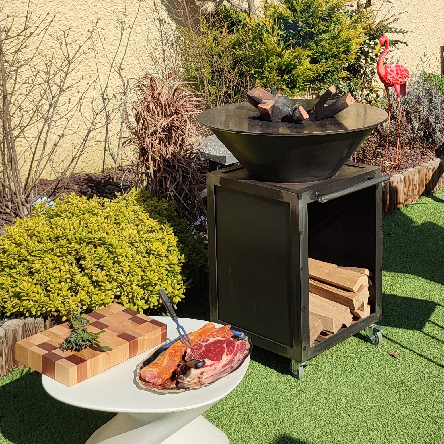Vous souhaitez réaliser un devis sur mesure pour le Brasero Mehetia ? Demande de devis Votre Brasero Mehetia Sur-Mesure Afin de réaliser votre brasero sur-mesure, complétez le formulaire ci-dessous. Je reviendrai vers vous très prochainement pour un devis personnalisé ! Nom - Prénom Téléphone E-mail Ville Dimensions caisson Dimensions plancha Hauteur totale Options Couvercle Acier Roues Billot de Boucher Tiroir à cendre Finitions Acier Acier Peint Acier Vernis Acier Rouillé et Vernis Informations supplémentaires Envoyer Brasero plancha artisanal Le brasero plancha artisanal est un véritable bijou de convivialité et de gastronomie en extérieur.