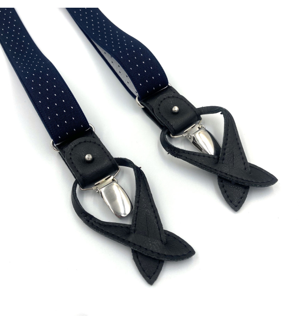 Bretelles bleu marine hommes made in france à pinces ou à boutons finition cuir vegan