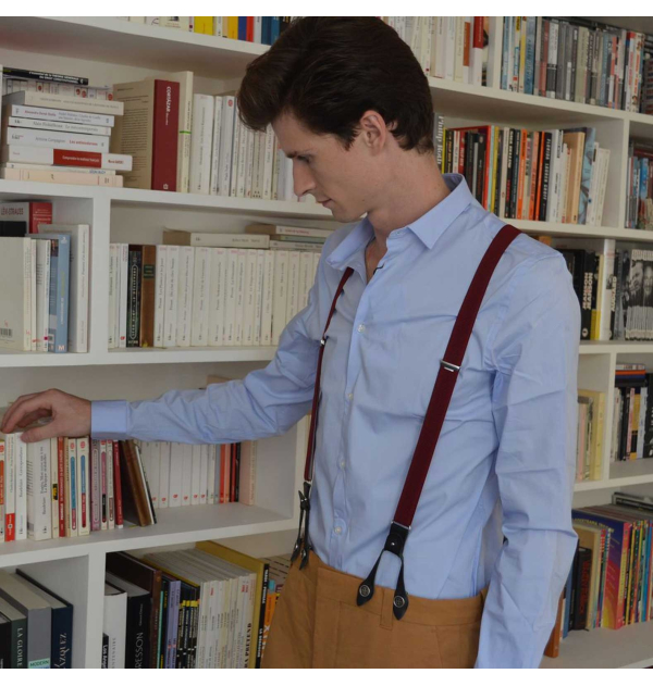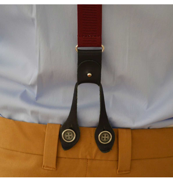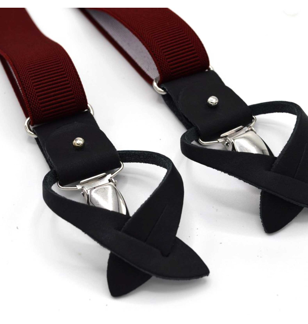 Bretelles fines bordeaux hybrides à pinces ou à boutons finition en cuir fabriqué en France