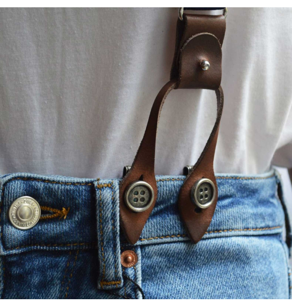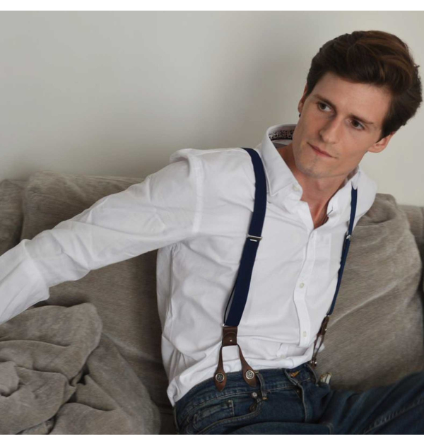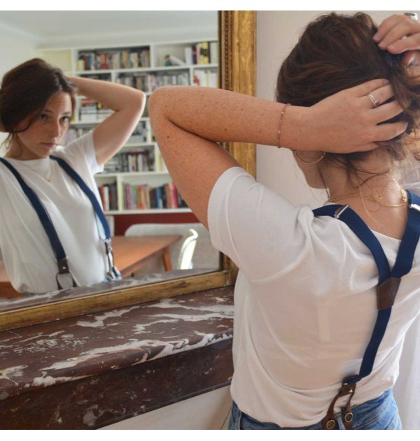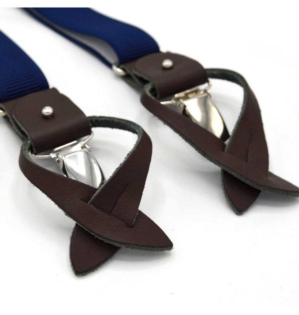 Bretelles fines marines hybrides à pinces ou à boutons finition en cuir fabriqué en France