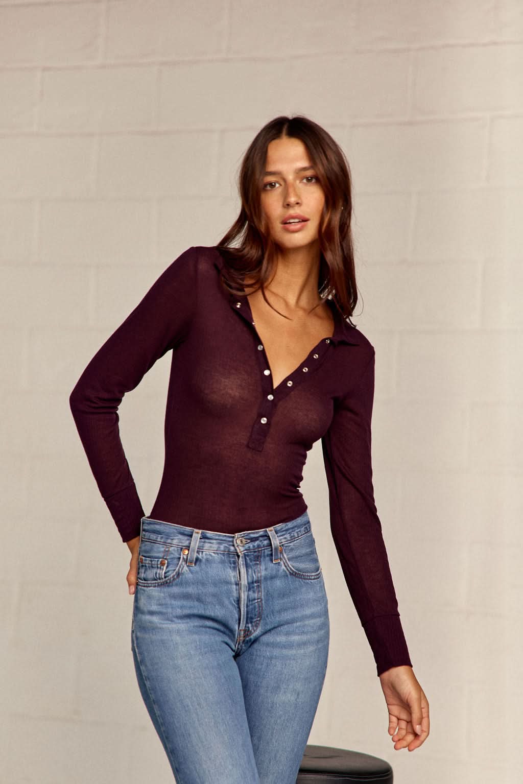 Coupe polo ajustée Boutons pression Tissu côtelé Fabriqué en France 70% Lyocell 30% Laine
