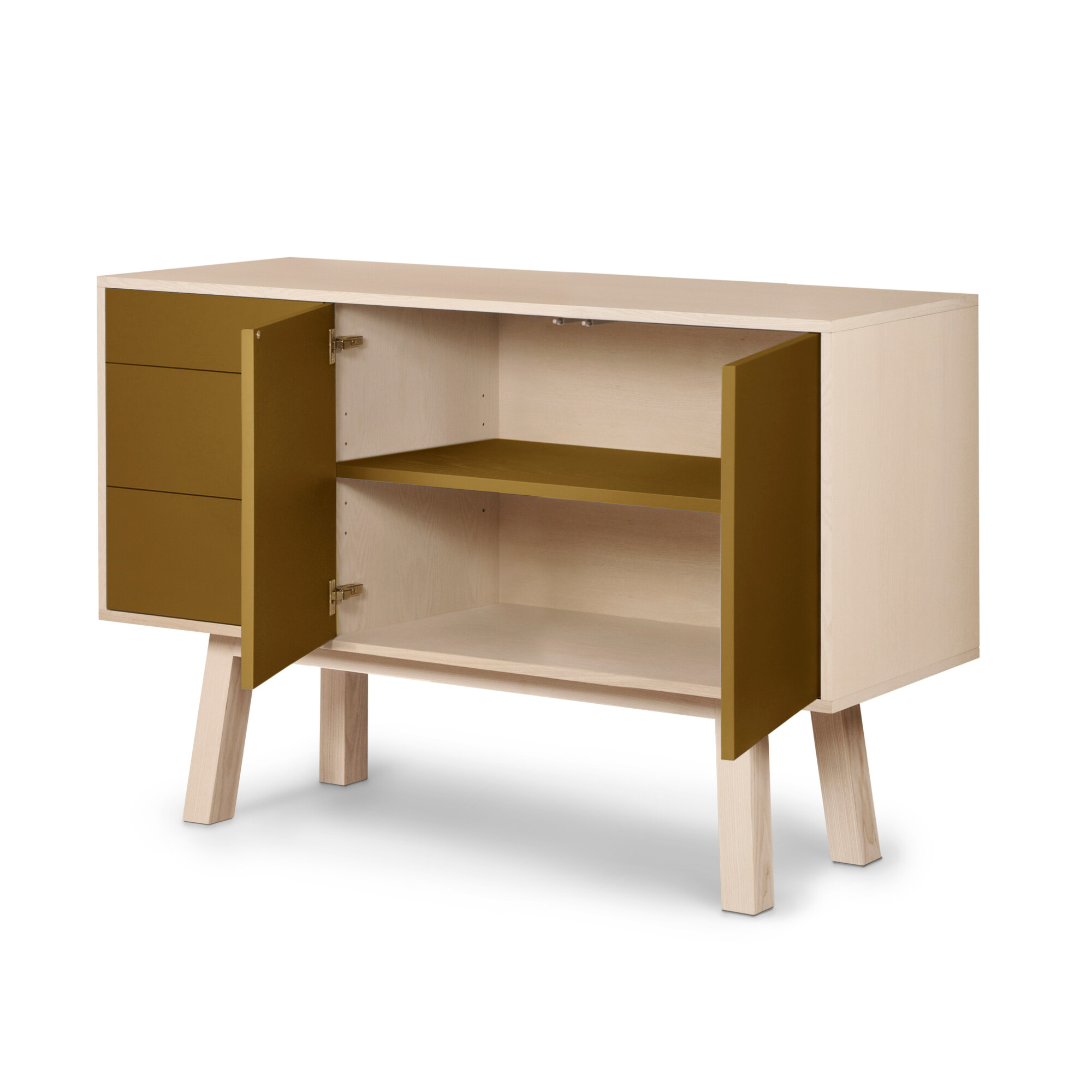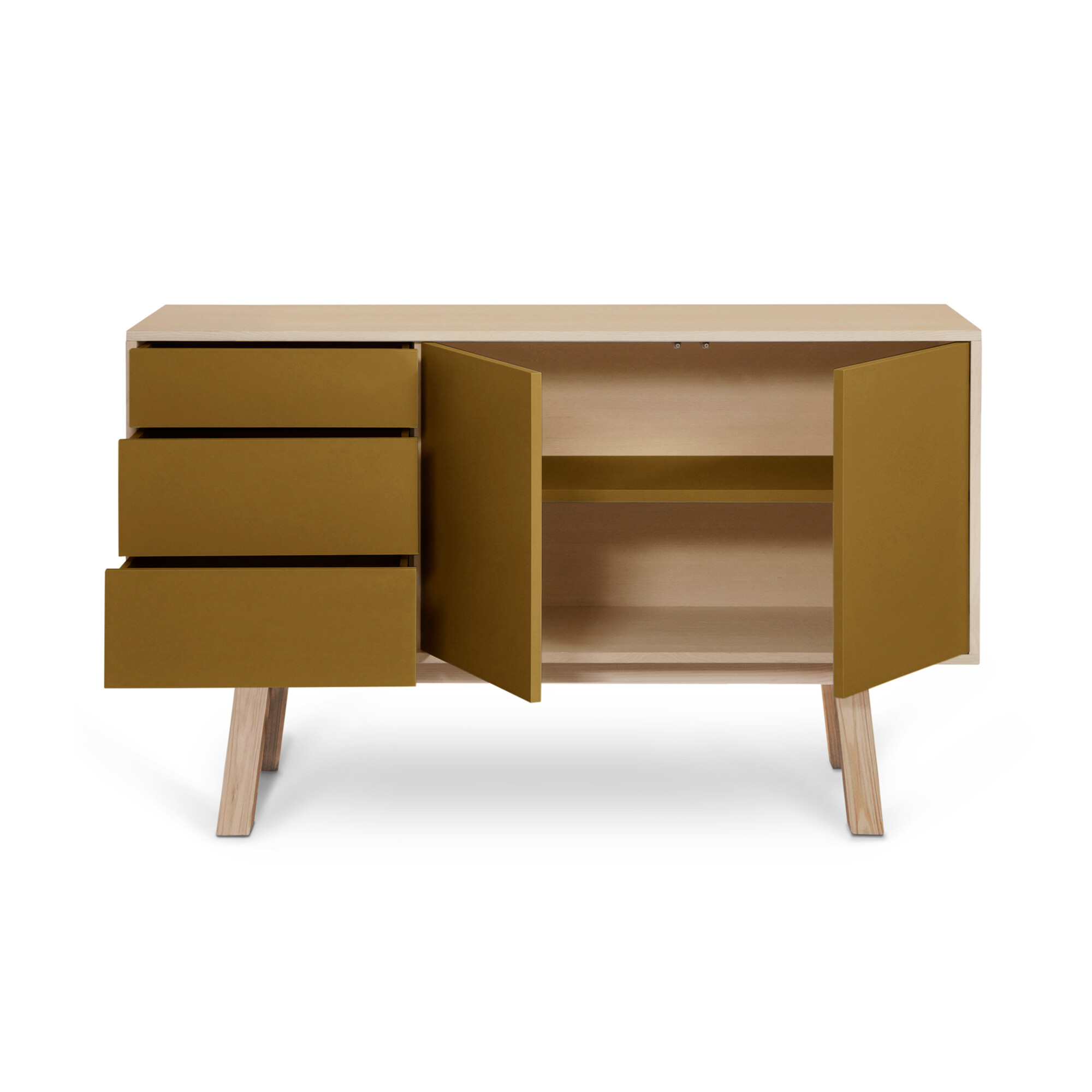 Découvrir buffet en bois 2 portes 3 tiroirs kube 120 & 140 cm – version haute, 11 couleurs