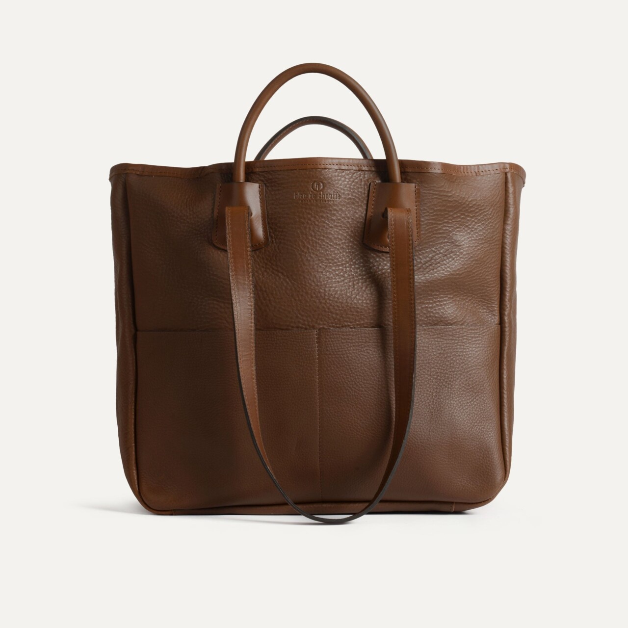 Découvrez le cabas Meline Marron Ambré en cuir tanné végétal : sac chic et fonctionnel, double porté, modulable business, fabriqué en France.