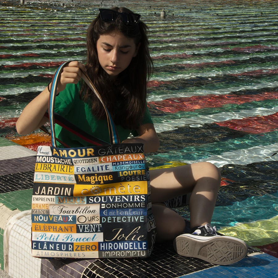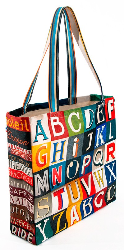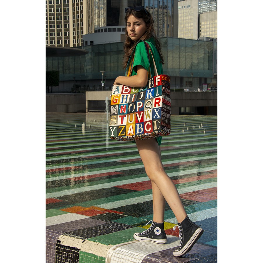 Le cabas shopping alphabet est imprimé de photos de lettres et de mots glanés à Paris. A bout de bras, portez vos messages avec ce cabas made in France.