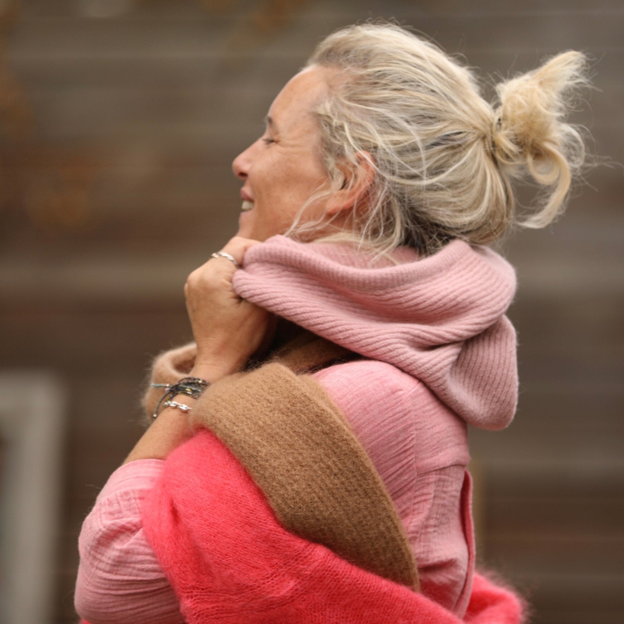 Danaé – Une cagoule enveloppante pensée comme une alternative moderne à l’écharpe et au bonnet. Tricotée en Italie, elle associe chaleur et douceur grâce à un mélange raffiné d’alpaga, de laine et de fibres souples.