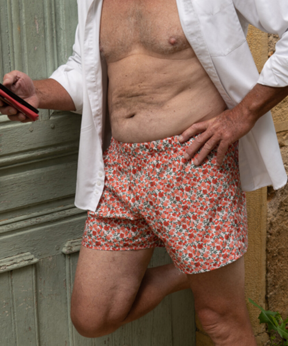 Ligne de caleçons fleuris ou à pois en coupe anglaise du 34 au 54 en 100% coton Bio ou écologique et de fabrication française. Pour les hommes qui ont envie de confort et d'élégance. Du 48 au 54, nos caleçons sont sur commande avec un délai de 15 jours de fabrication.Tous nos articles sont faits de coton bio ou écologique.Pour retrouver les certificats "oeko-tex" et "gots" de nos tisserands, rendez-vous en bas de page dans "certificats"