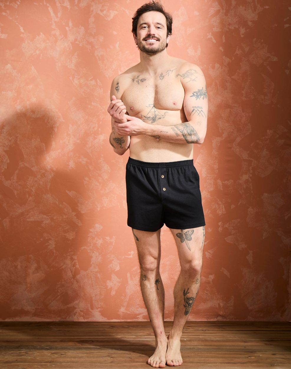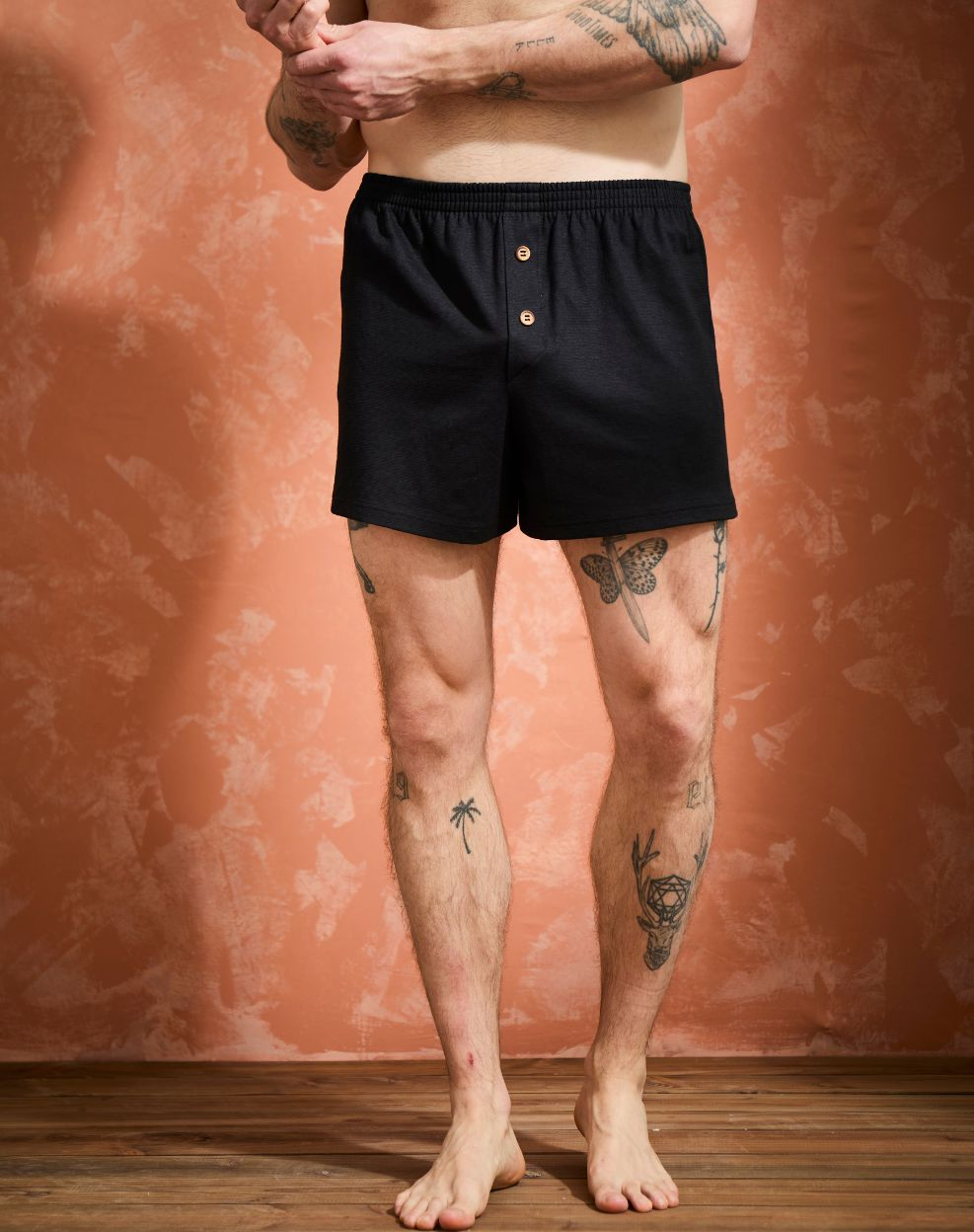 Caleçon court Lin - Coton BIO - Noir - Homme | Colin, le caleçon qui réinvente le confort naturel. Quand la fraîcheur du lin rencontre la douceur du coton, cela donne un boxer d’exception : léger, respirant, pensé pour accompagner chaque mouvement avec une aisance absolue.