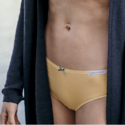 Candice est la culotte dans laquelle on se sent bien, pour un vrai confort au naturel !Osez ce bel OCRE JAUNE , une couleur profonde qui nous relie à la terre, généreuse, chaude et lumineuse pour rendre notre lingerie plus joyeuse !Une ligne sobre et enveloppante, avec son ruban élastiqué ton/ton et discrètement satiné, une maille très douce en coton biologique avec un soupçon d'élasthanne pour plus de confort au quotidien.Maille tricotée à Troyes,certifiée Gots + Oëkotex 100 sans solvants, ni métaux lourds, ni perturbateurs endocriniens.