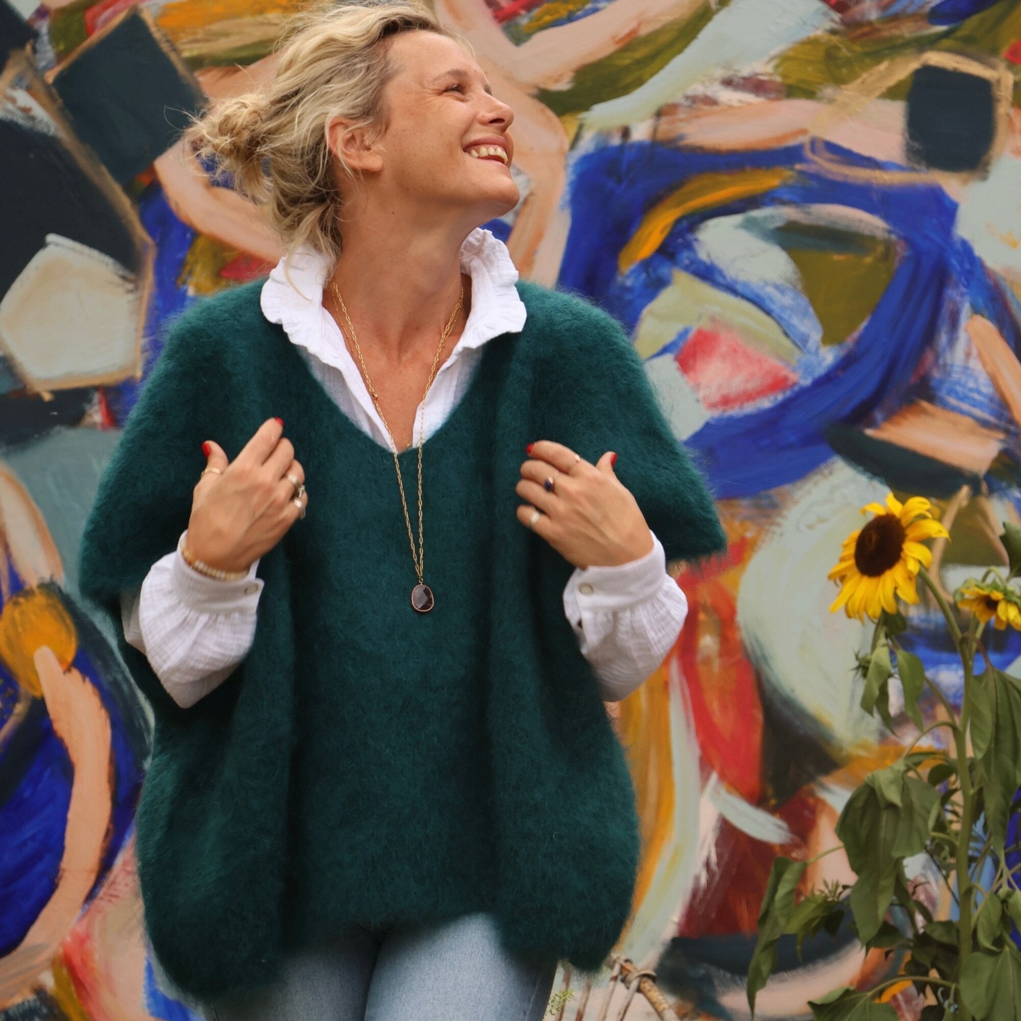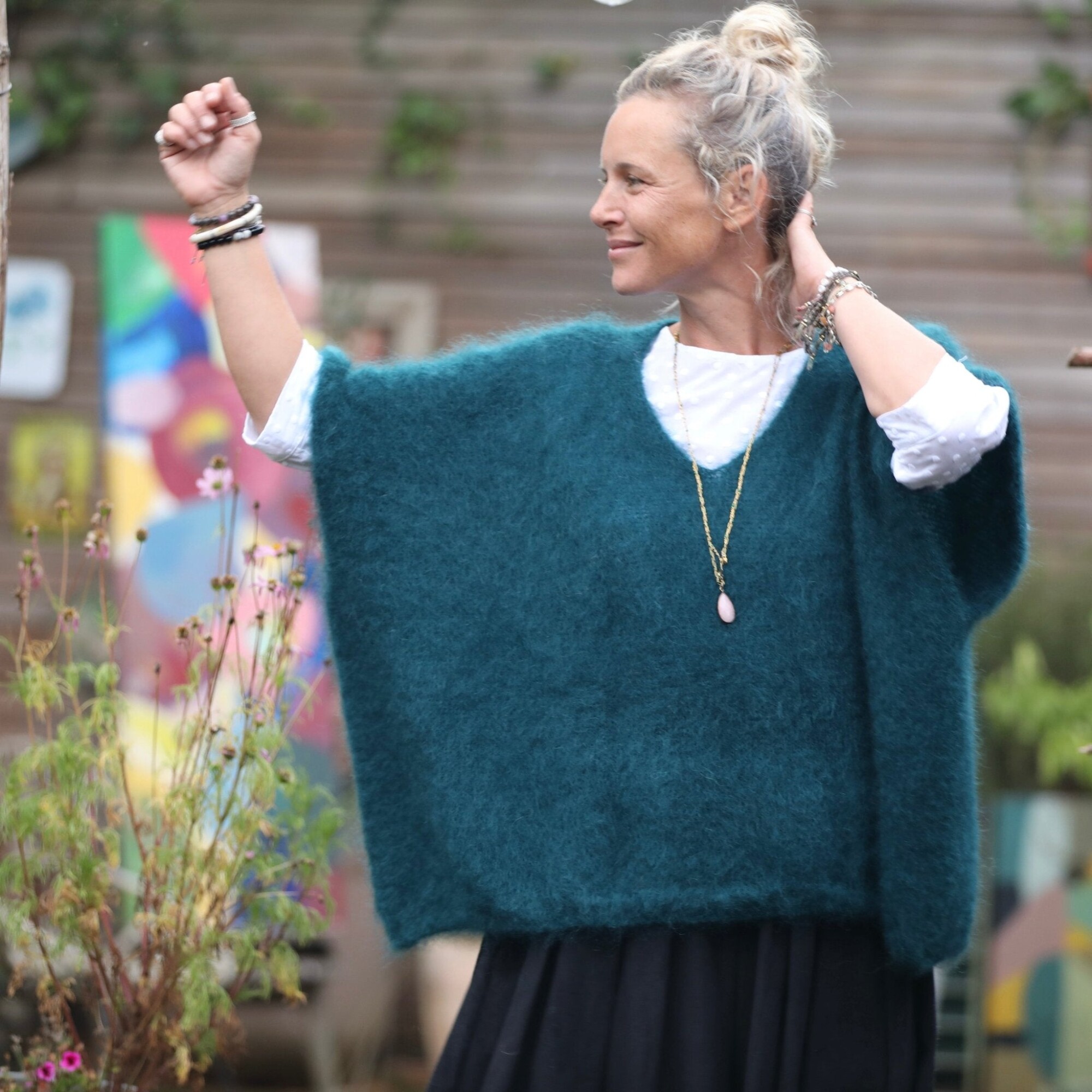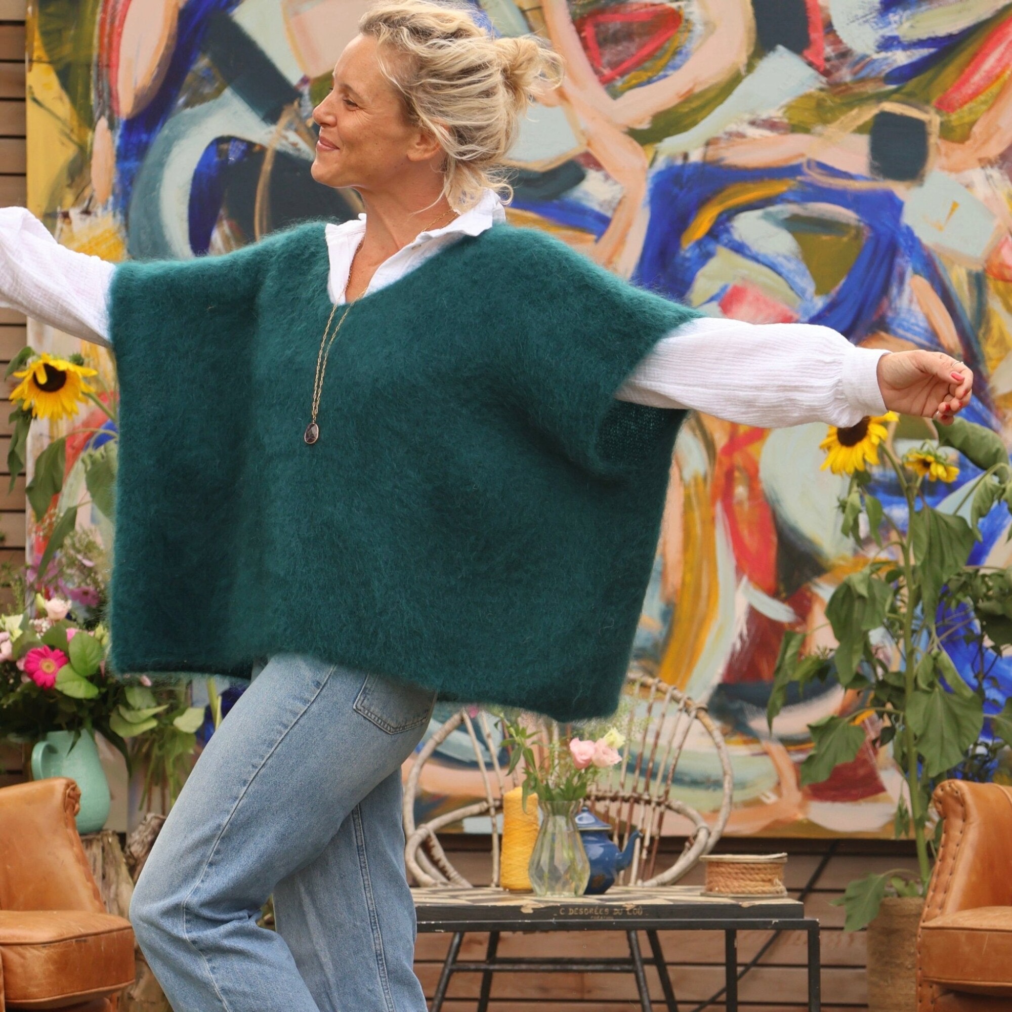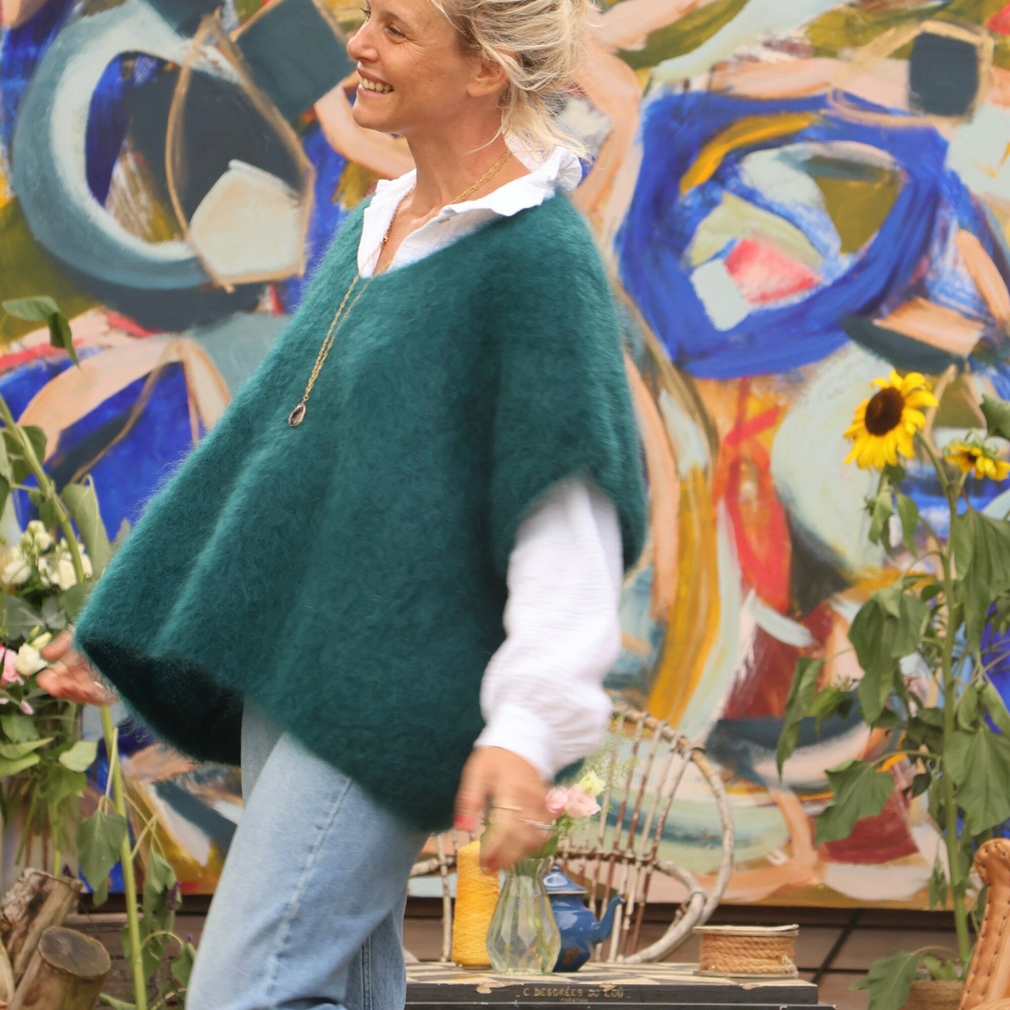 Voici Bérénice, une élégante cape à col en V, d'une incroyable douceur grâce à sa composition en 81% de kid mohair. Cette pièce vous enveloppera de confort tout en vous offrant une allure élégante.
