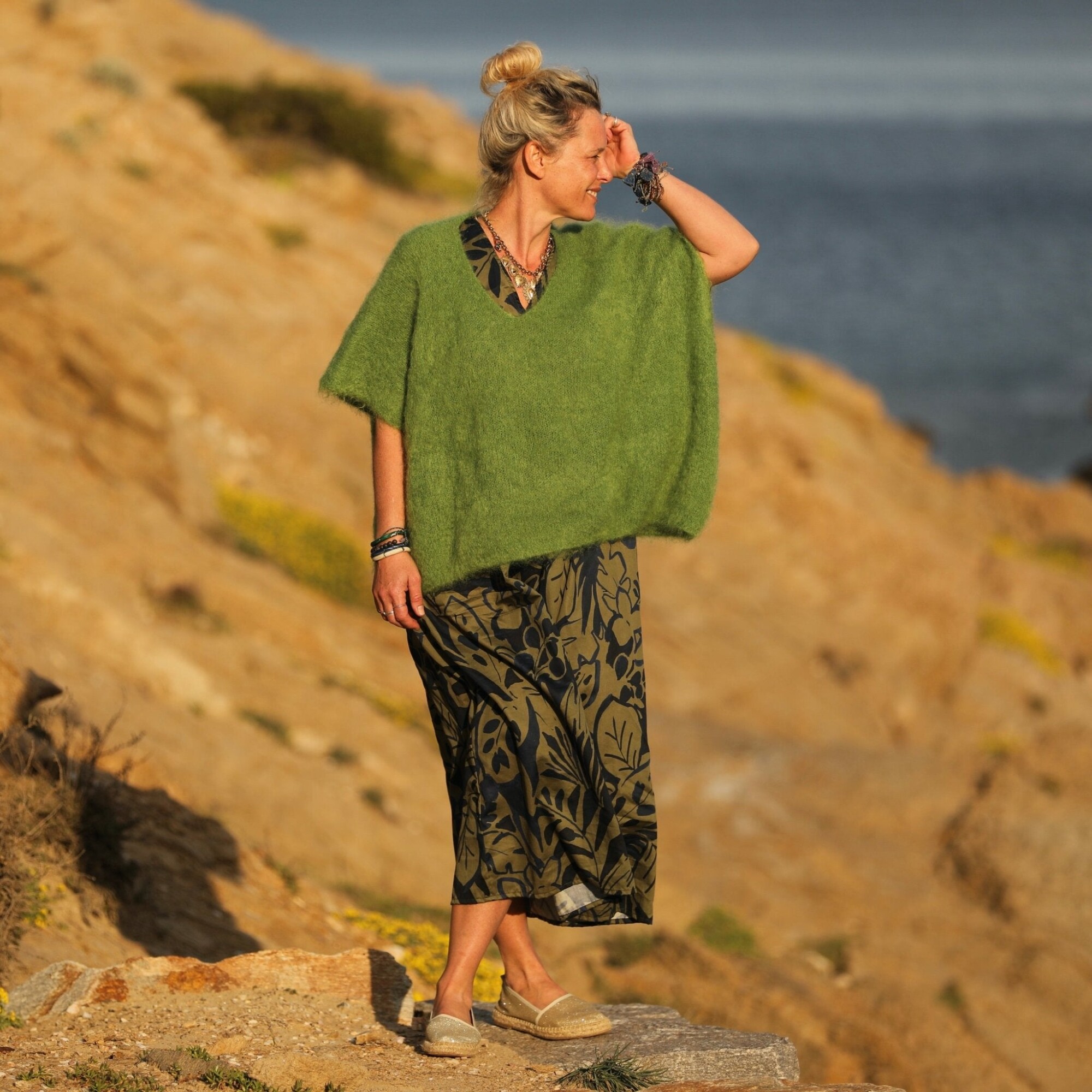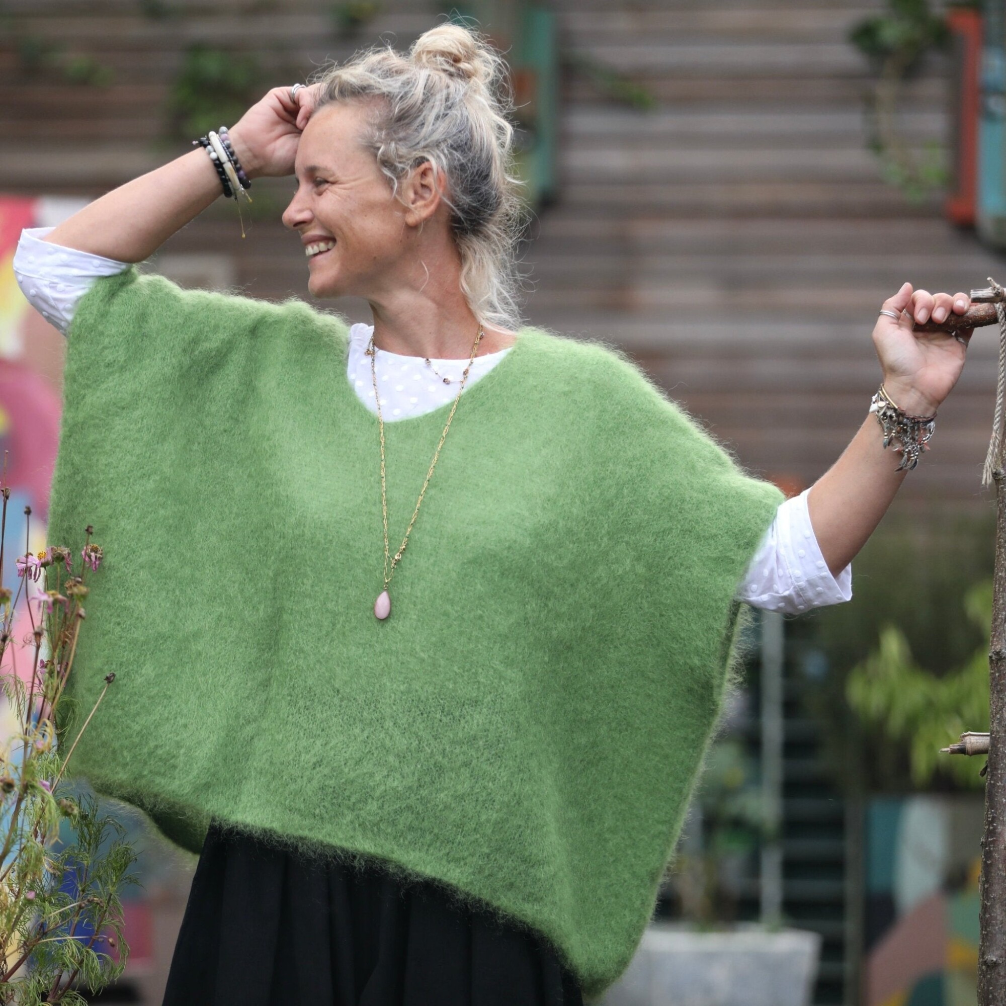 Voici Bérénice, une élégante cape à col en V, d'une incroyable douceur grâce à sa composition en 81% de kid mohair. Cette pièce vous enveloppera de confort tout en vous offrant une allure élégante.
