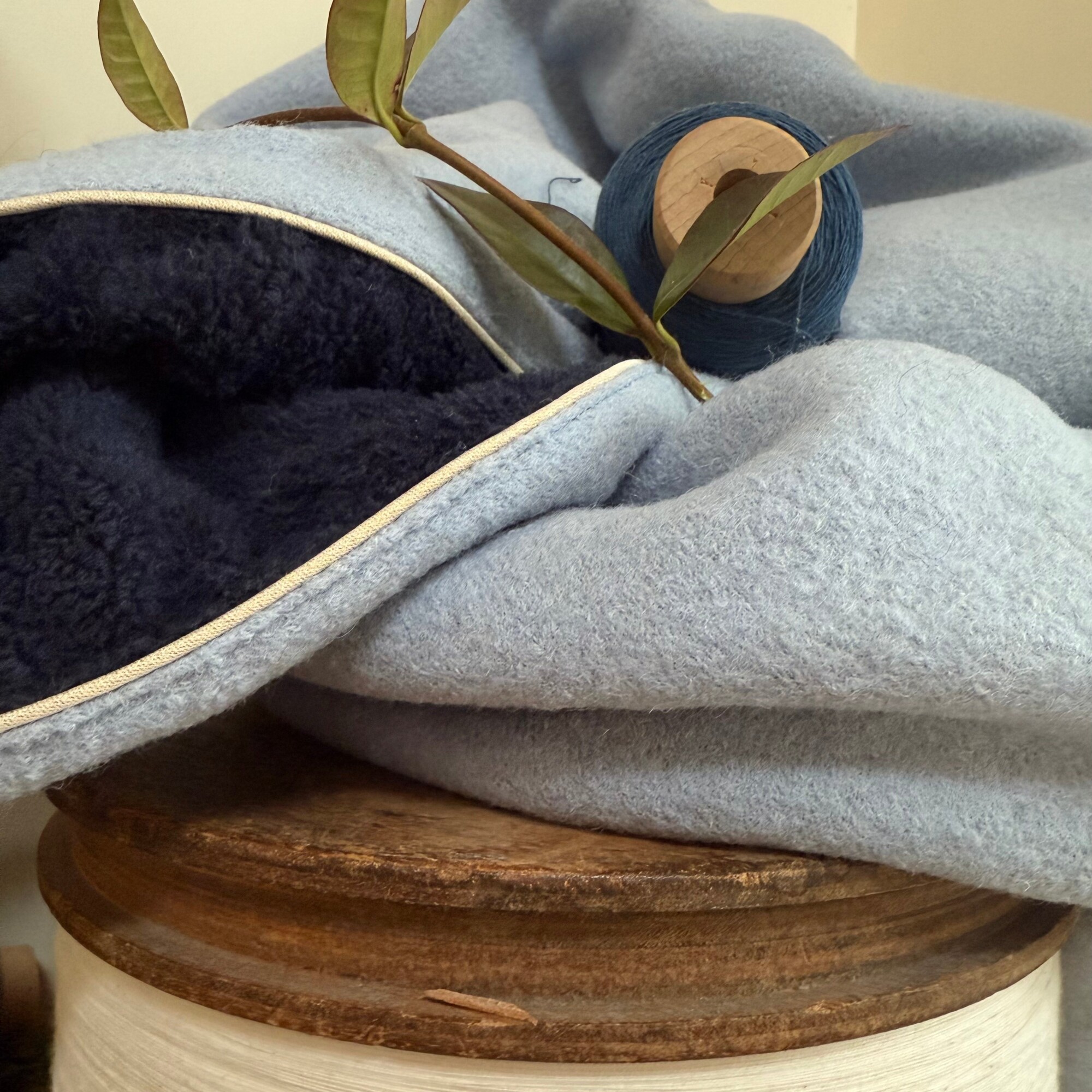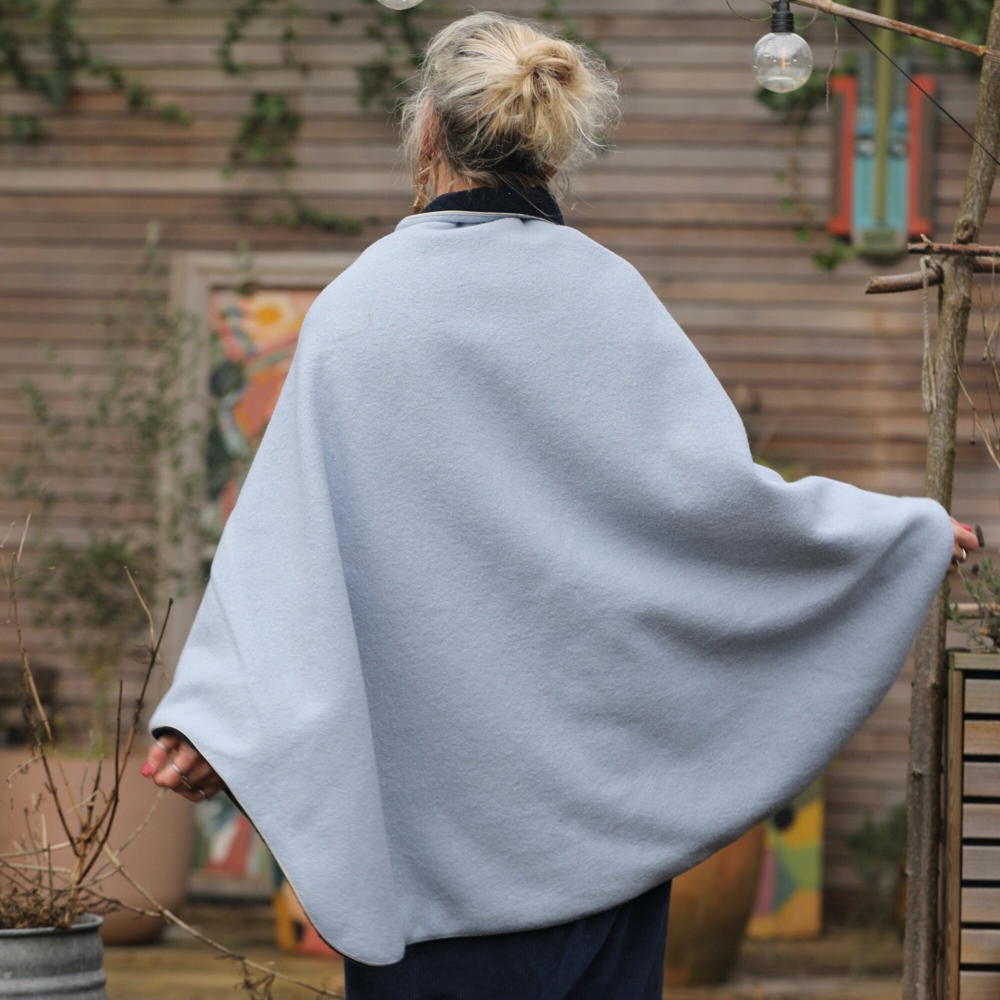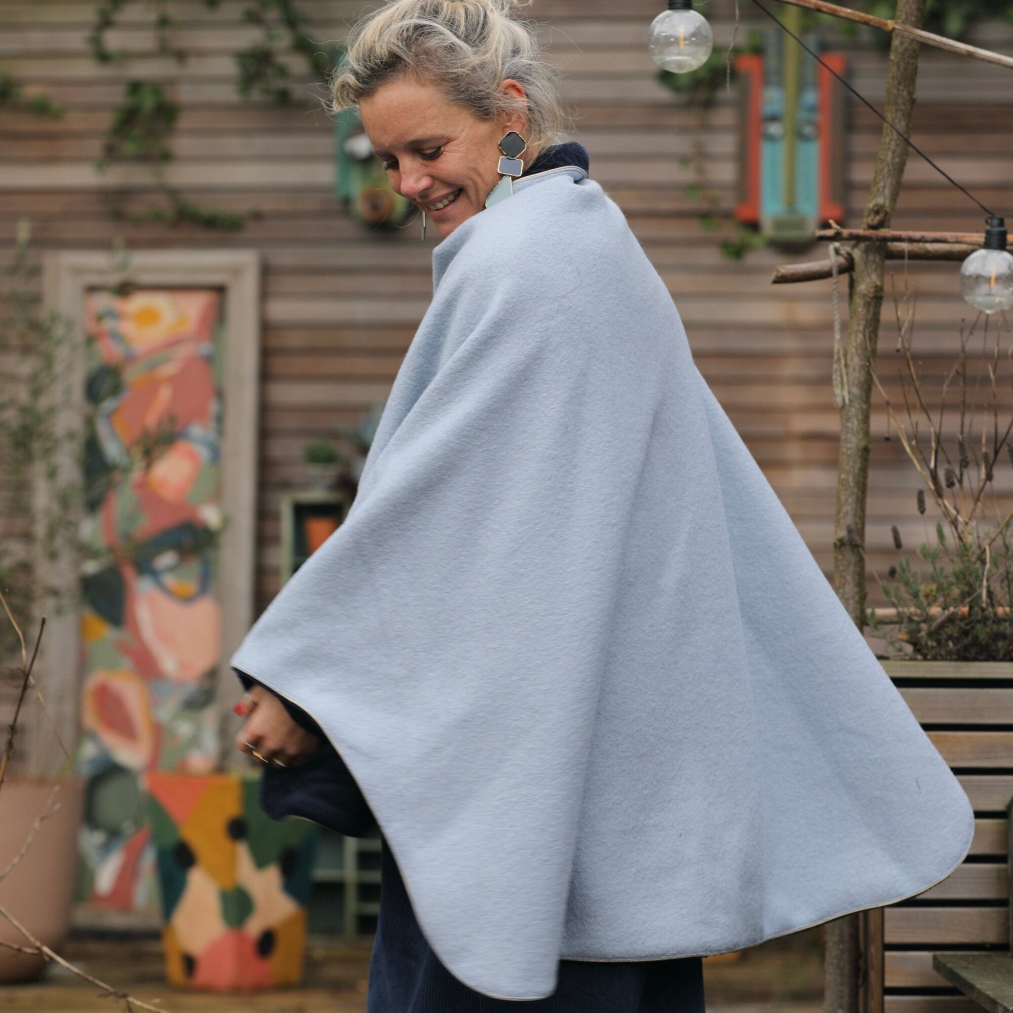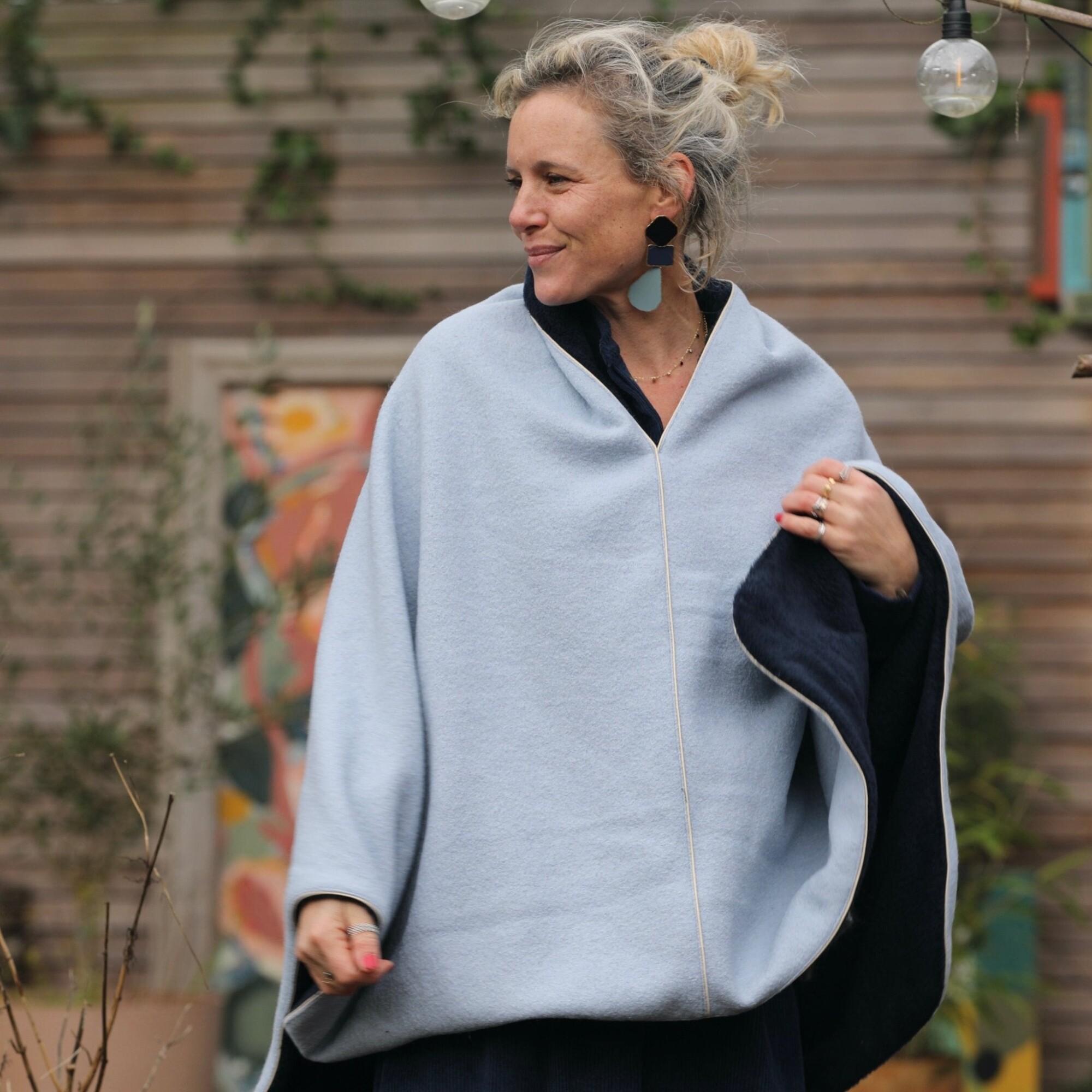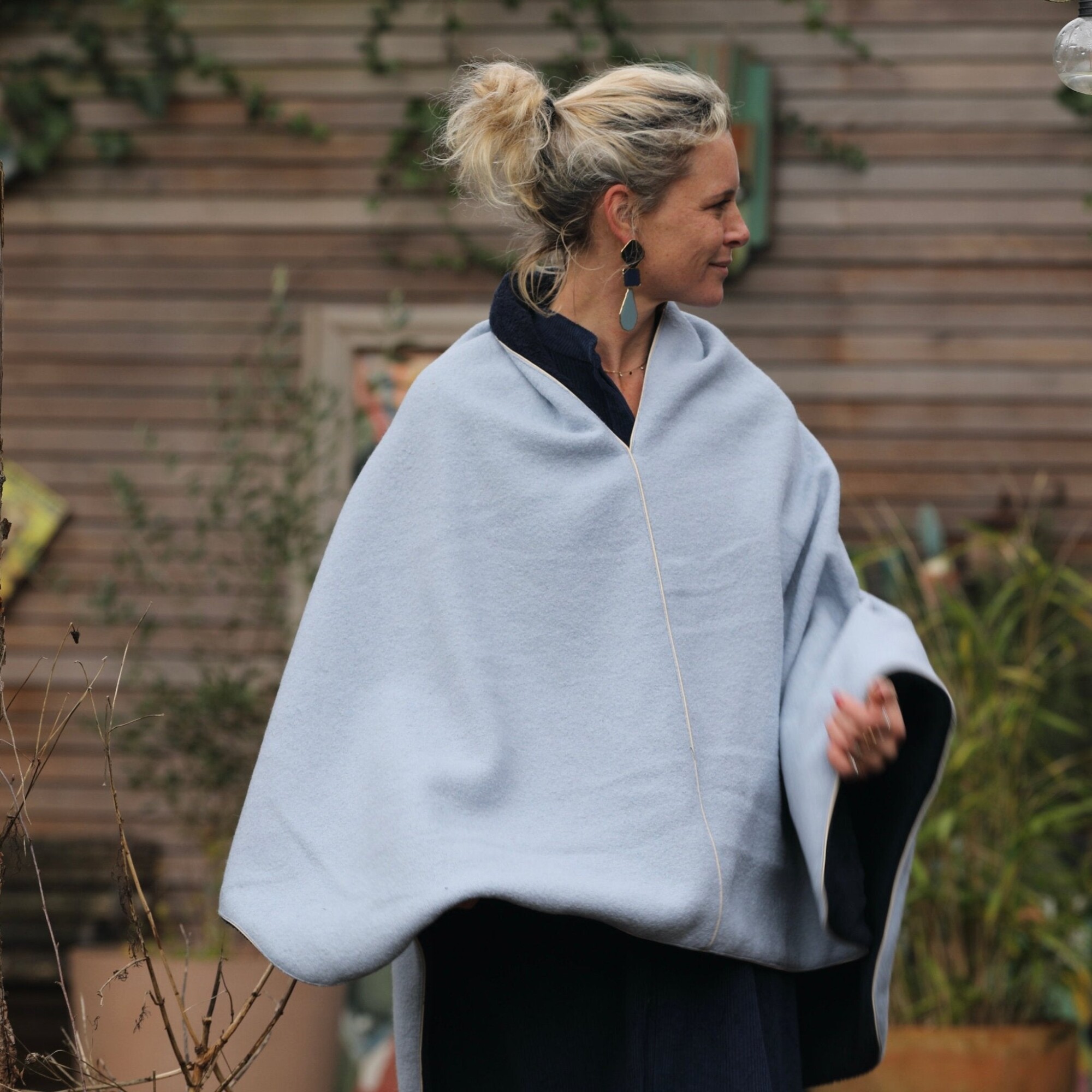 Cape midi Eugénie - laine bouillie ciel / doudou marine
