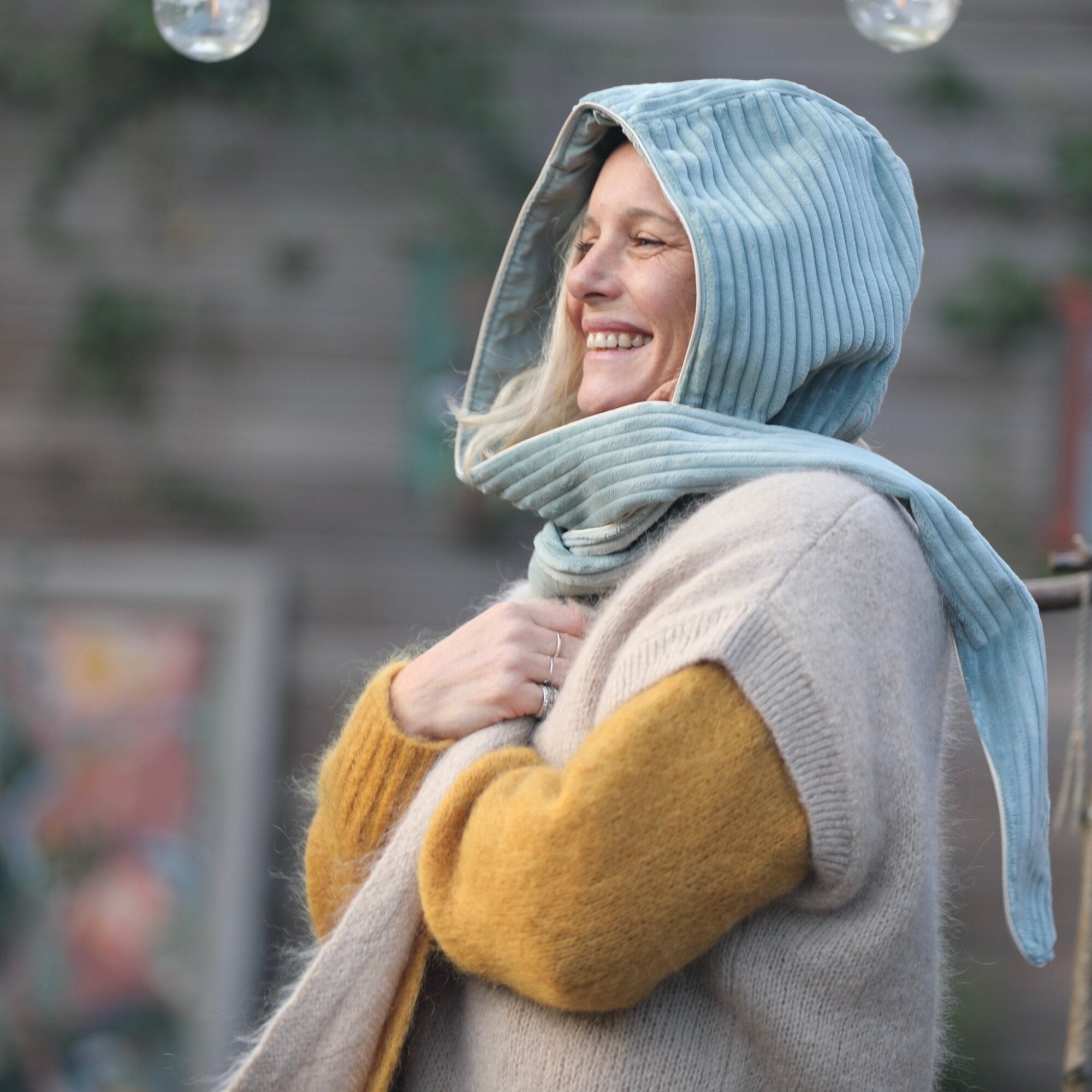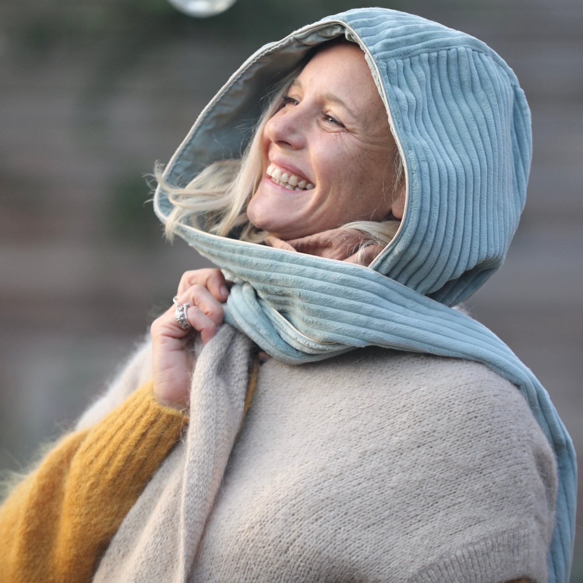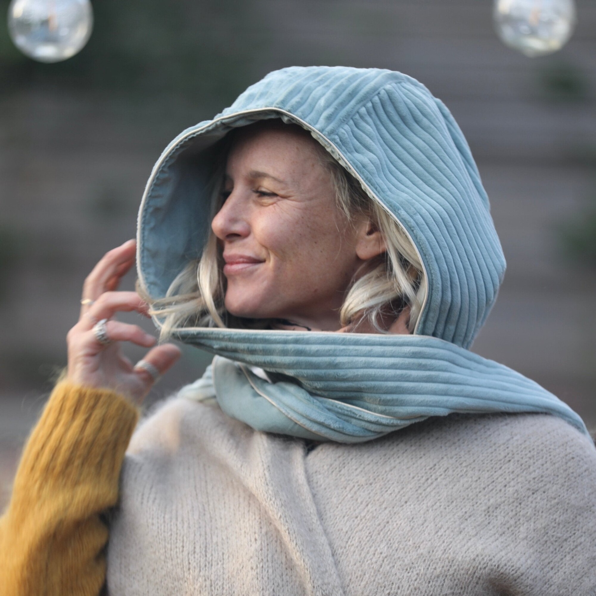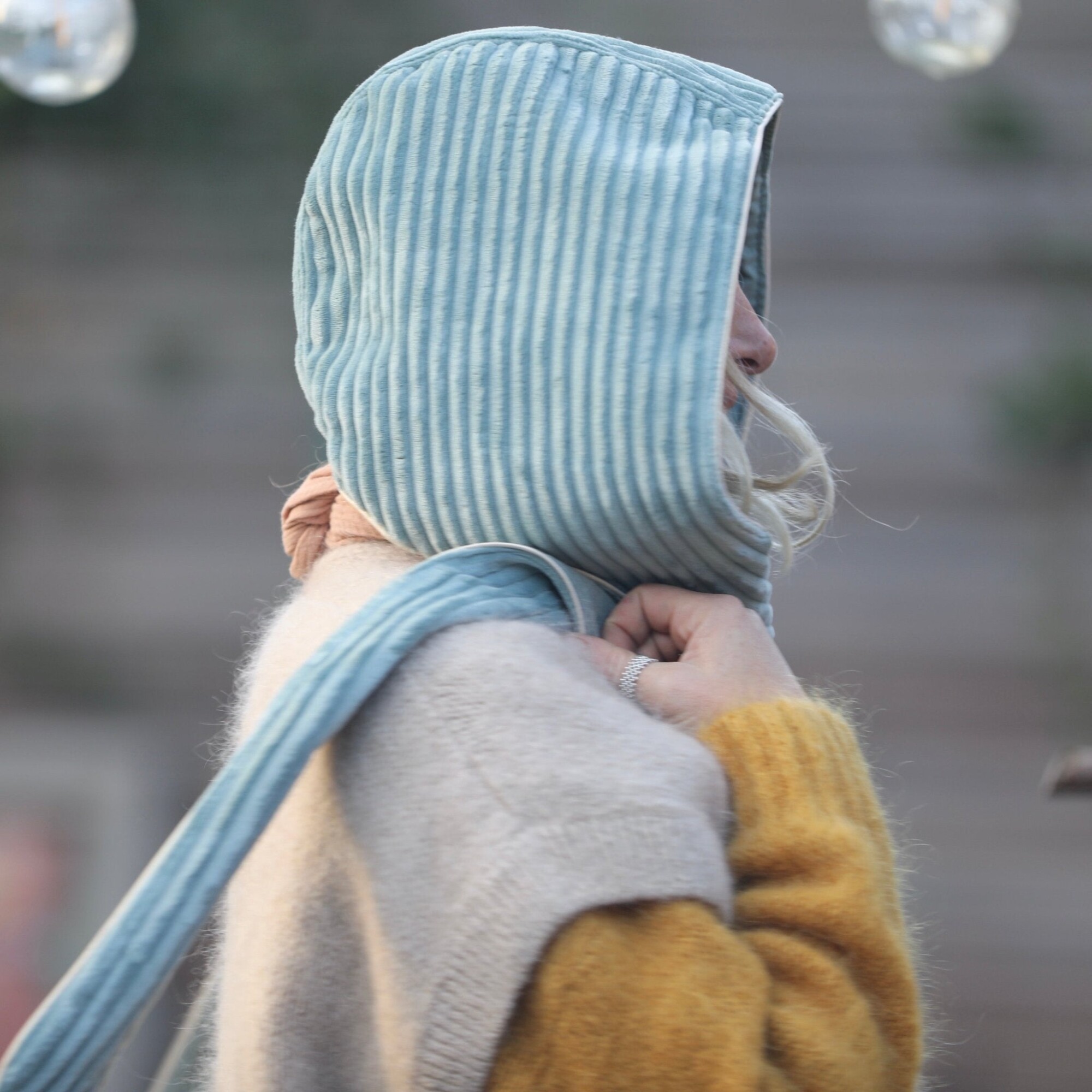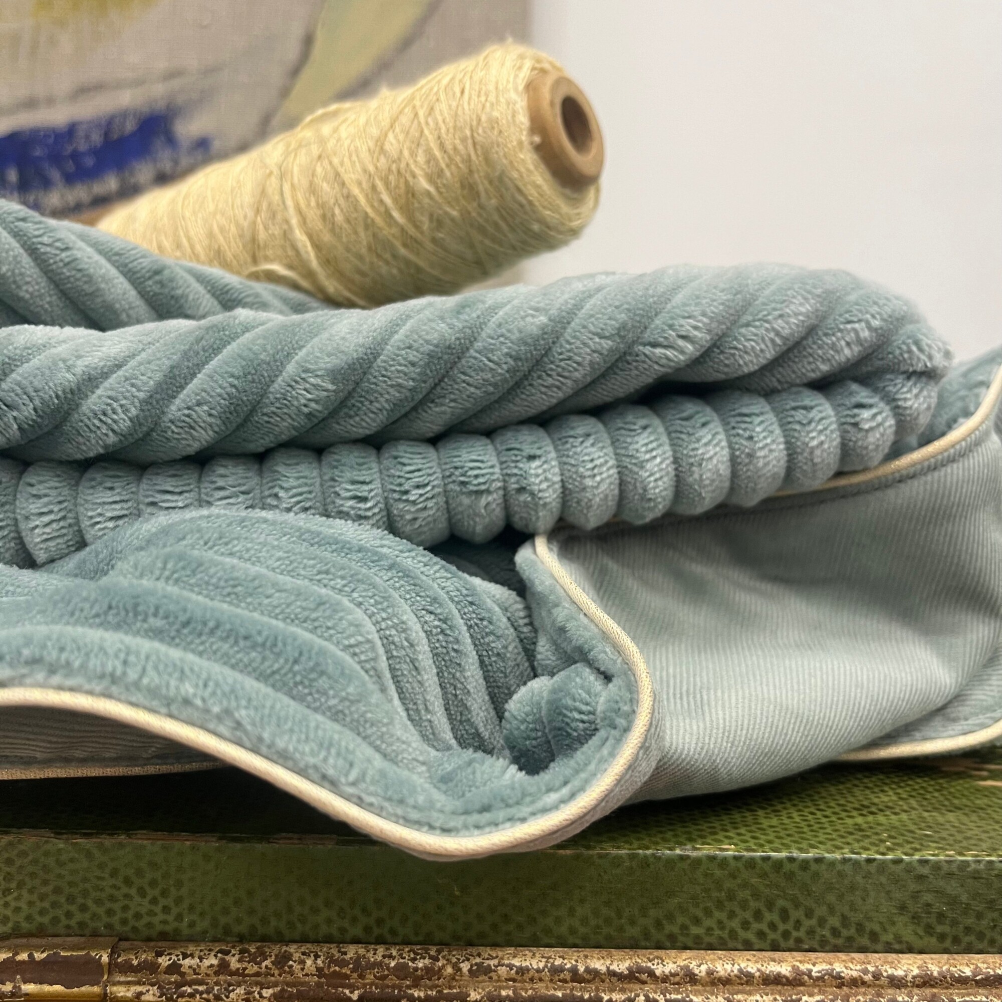 Capuche Rosalie - velours grosse côtes vert d'eau/velours milleraies vert d'eau