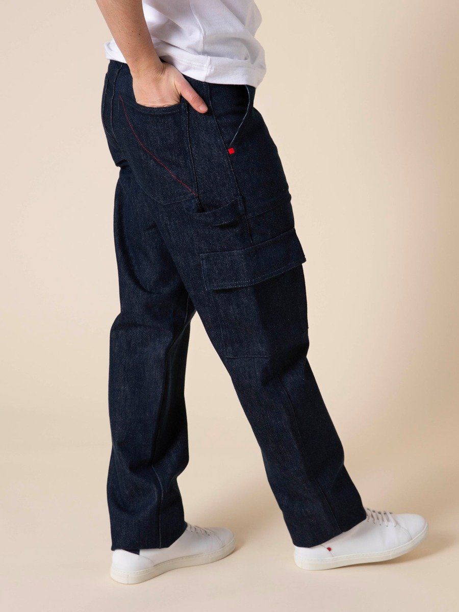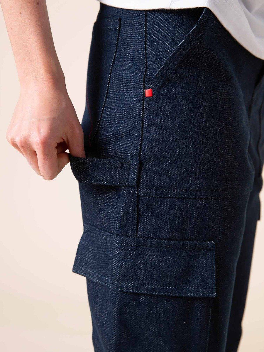 LE PANTALON CARGO POUR FEMME Notre premier pantalon cargo pour femme ! Notre coupe cargo est large et tellement pratique avec ses poches à soufflets sur les côtés et ses poches à rabats au dos. Notre cargo rappelle les origines du vêtement de travail tout en apportant une touche d'élégance avec ses poches à l'italienne sur le devant.