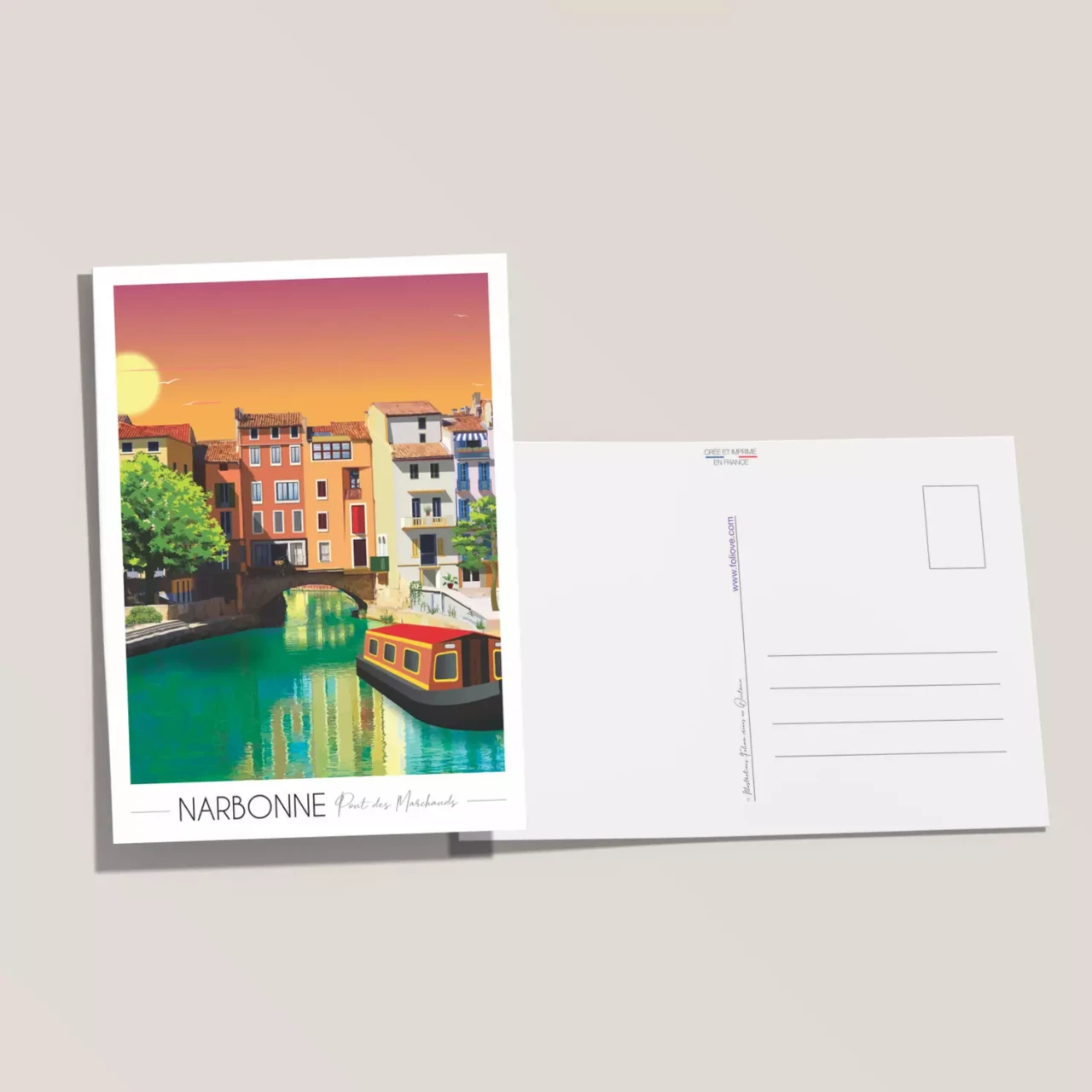 La carte postale de Narbonne et son Pont des Marchands capture l'essence et l'histoire de cette ville Occitane, dans une illustration colorée et vibrante. Imprimée en France, cette œuvre artistique évoque l'architecture antique et l'ambiance ensoleillée de la ville. Un ajout élégant et émotionnel pour tout espace cherchant à allier sophistication et caractère.