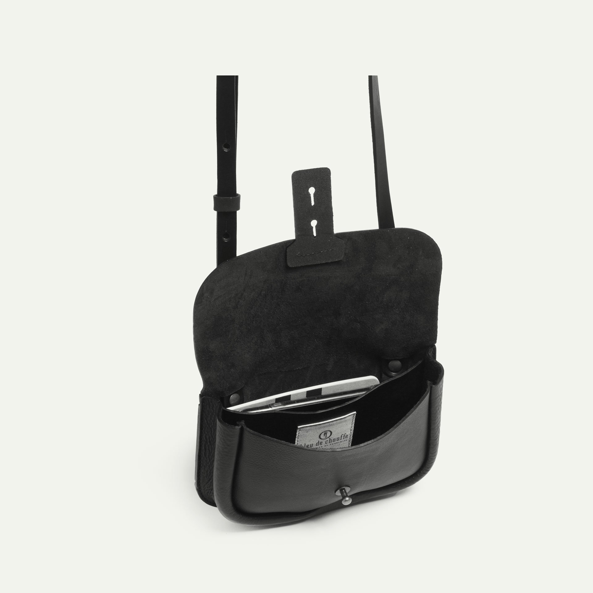 Découvrez le sac besace en cuir tanné végétal "Carbure" coloris Marron de Bleu de Chauffe. Ce petit sac bandoulière est idéal au quotidien, pour vos week-ends ou voyages. Sac en cuir homme et sac à main femme, style workwear, fabriqué en France.