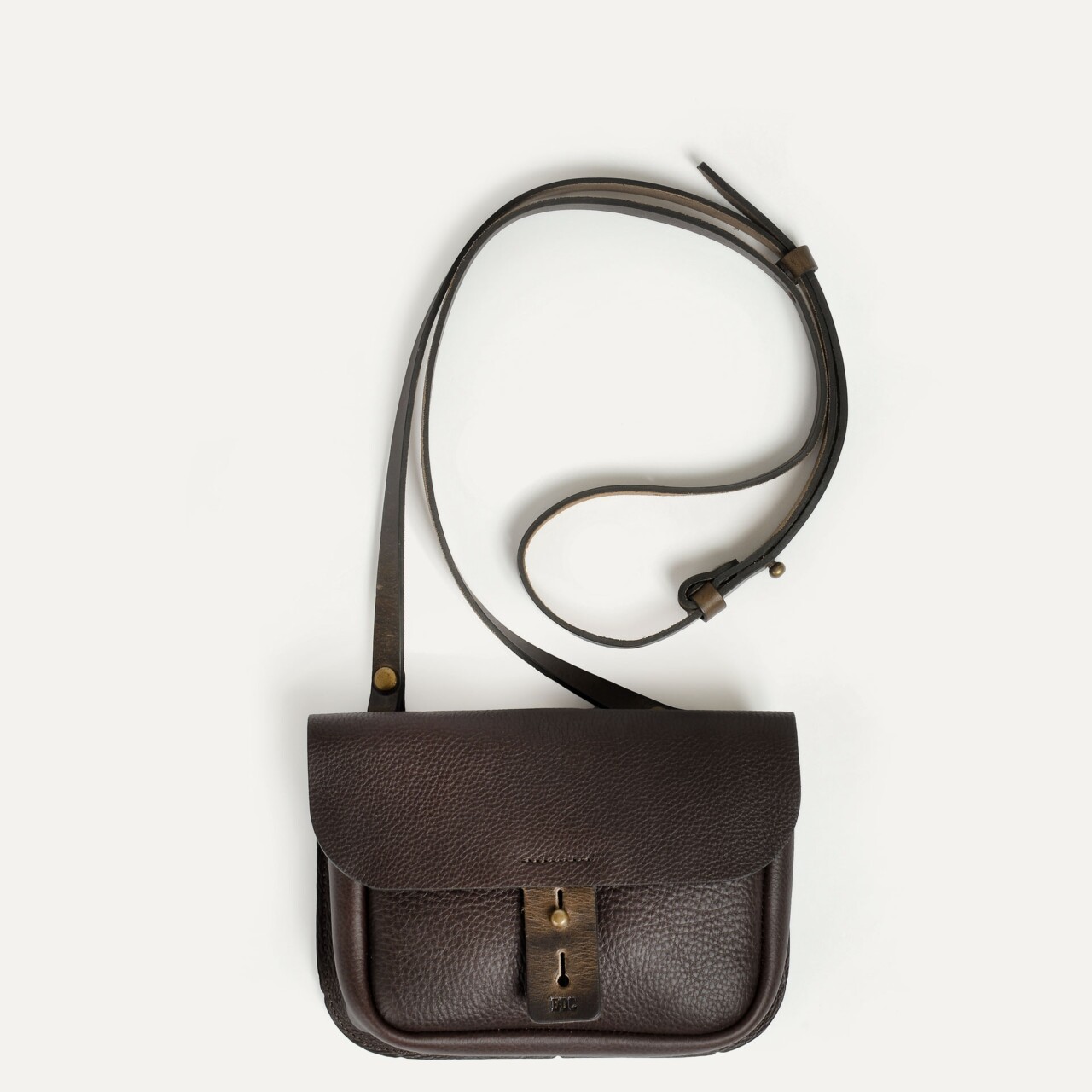 Sac à main femme en cuir tanné végétal, modèle Carbure Marron Brun signé Bleu de Chauffe. Format baguette pratique, porté épaule ou bandoulière, fabriqué en France.