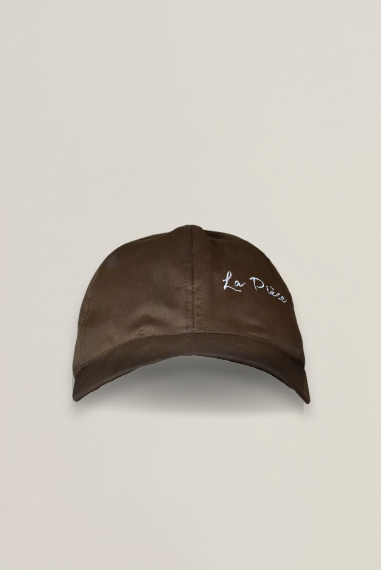 Cette matière cirée confère à cette casquette une texture délicatement lustrée, tandis que sa teinte subtilement nuancée ajoute une touche de sophistication discrète.