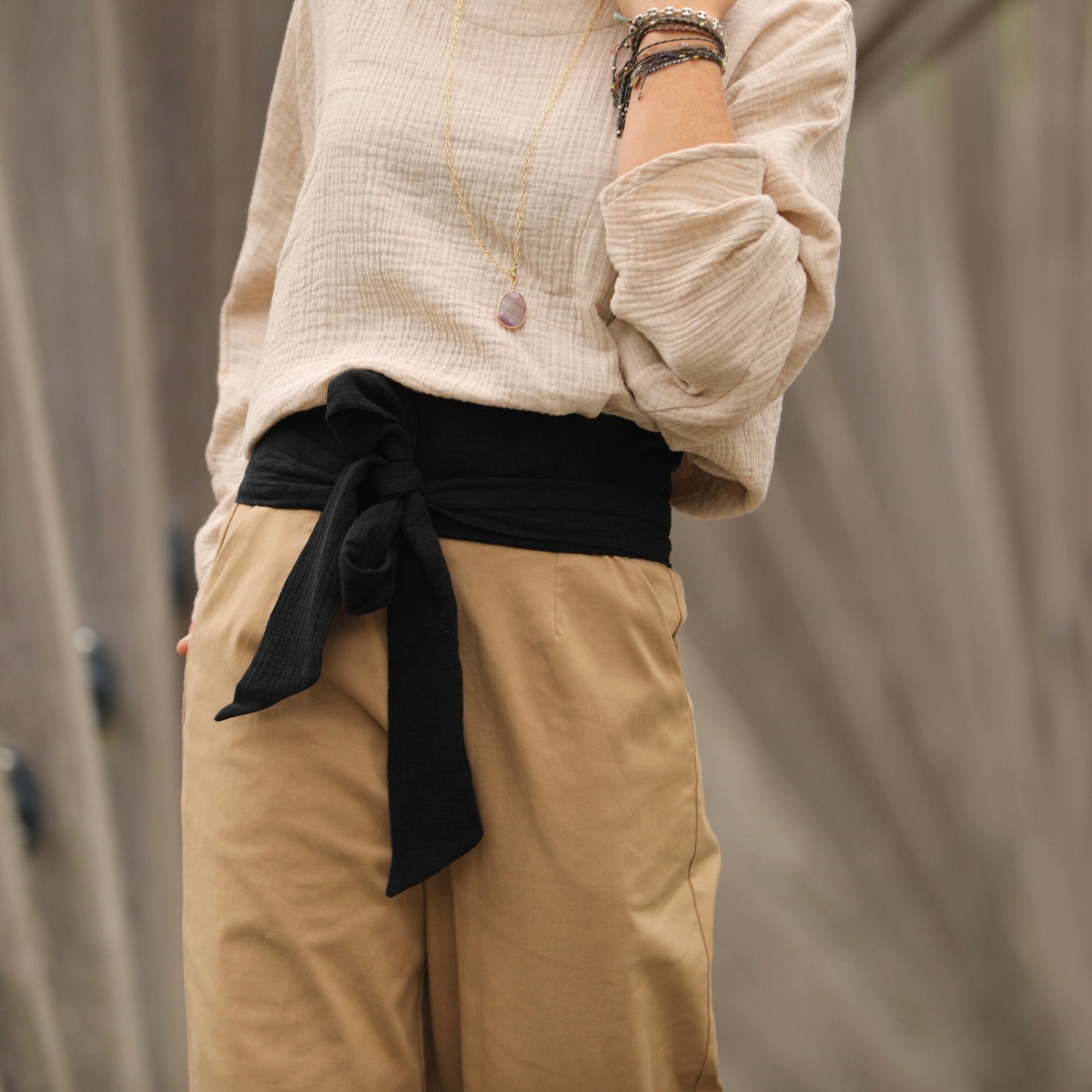 Voici Anita notre ceinture 100% made in France. Elle se positionne au niveau de la taille ou des hanches et s'adapte à toutes les tailles.