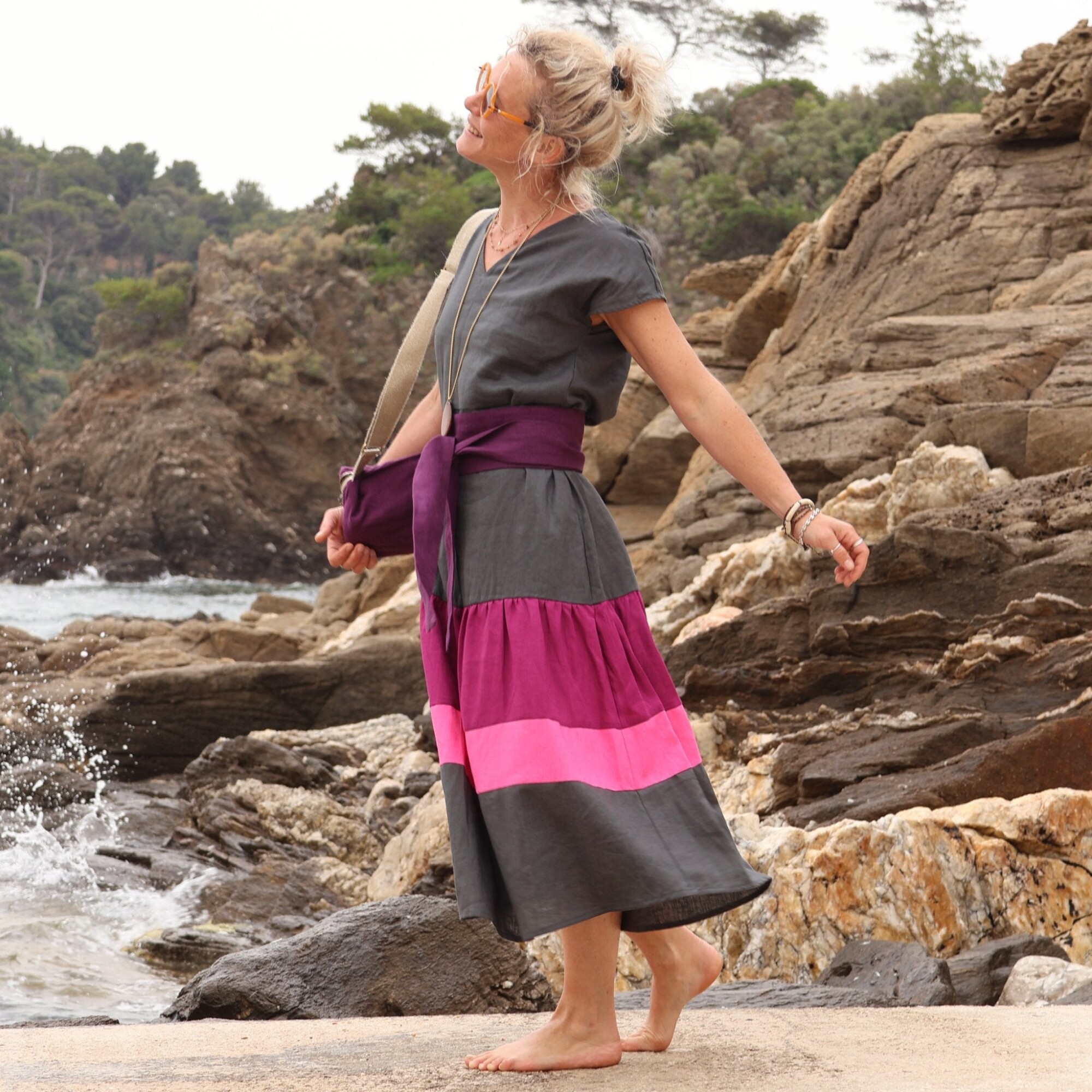 Voici Anita notre ceinture 100% made in France. Elle se positionne au niveau de la taille ou des hanches et s'adapte à toutes les tailles.