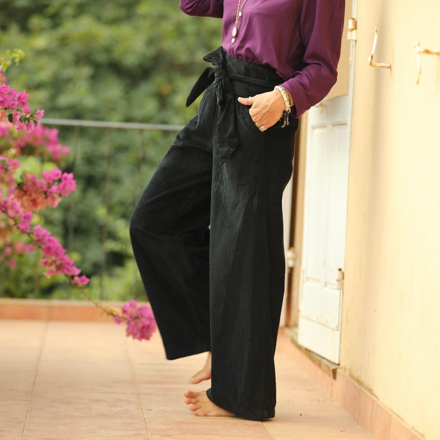 Ceinture Anita - velours de coton milleraies noir