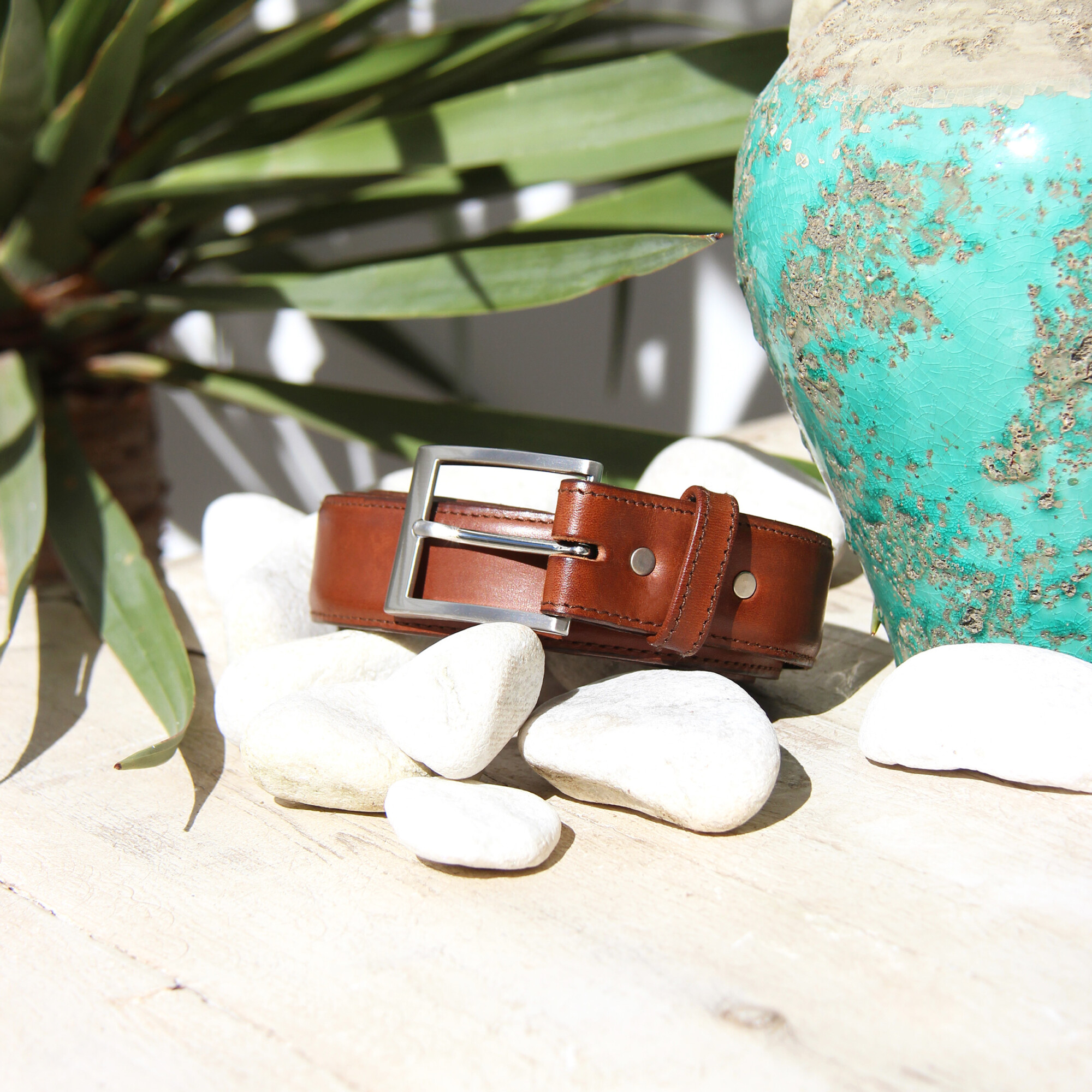 Ceinture classique homme en cuir cognac, fabriquée en Italie. Aussi appelée ceinture cuir homme habillée ou ceinture costume homme, elle accompagne vos tenues formelles et décontractées. Son cuir se patine avec le temps pour un caractère unique. Cuir de veau pleine fleur cognac d'origine Italie. Doublure cuir tannage végétal. Double épaisseur. Couture piqué sellier. Boucle métal brossé argent. Largeur 3,5 cm. 7 trous. Livrée dans son pochon en coton biologique. Composée d'une double épaisseur de cuir et fabriquée en Italie. Emballage certifié FSC et PEFC, réemployable et recyclable. La taille d'une ceinture correspond à la mesure de votre tour de taille. Nettoyez avec un chiffon doux, appliquez une crème pour nourrir le cuir et un cirage pour protéger la couleur.