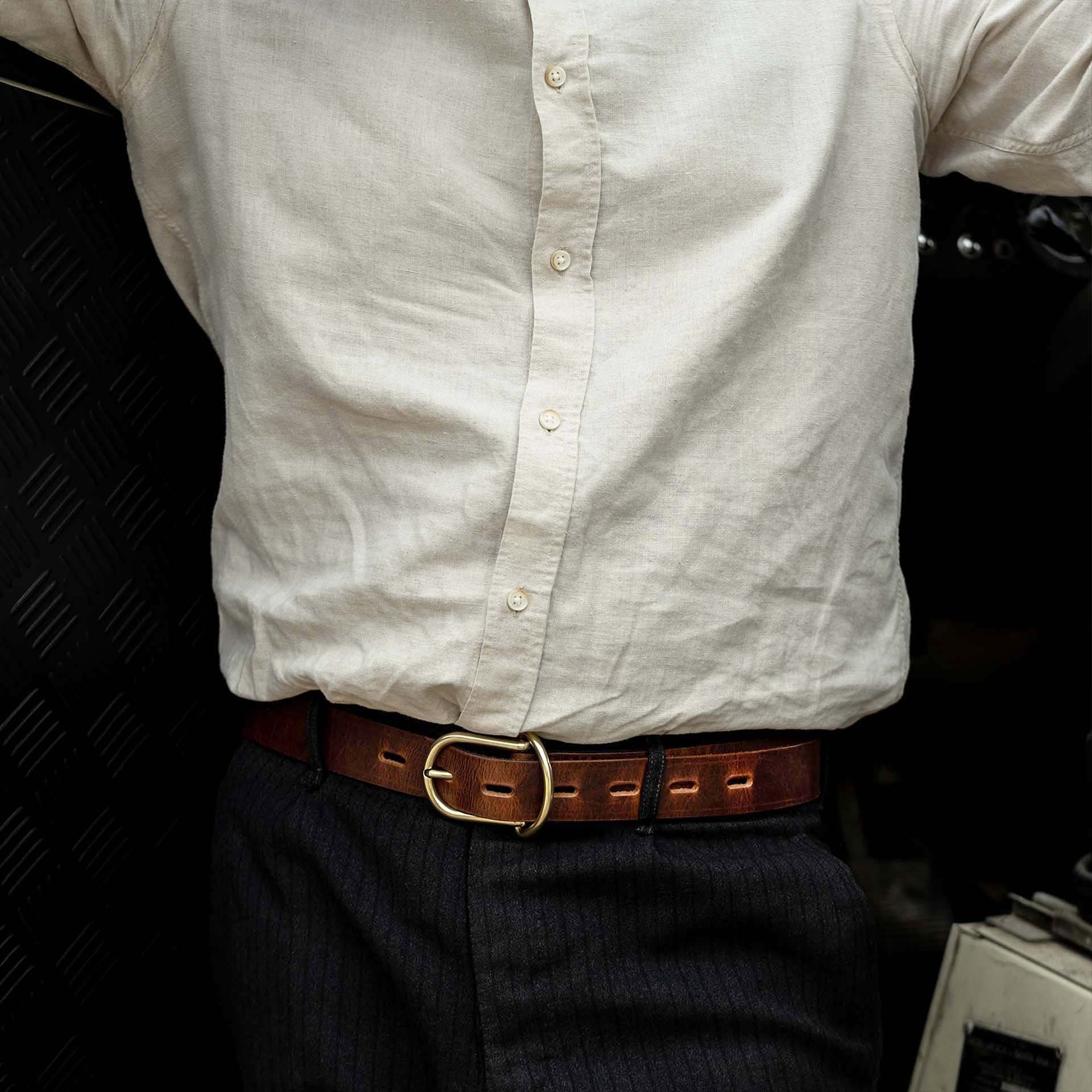 Découvrez la ceinture en cuir tanné végétal Manchette - Pain Brûlé - Fabriqué en france. Accessoires en cuir tendance pour homme en vente sur Bleu de chauffe
