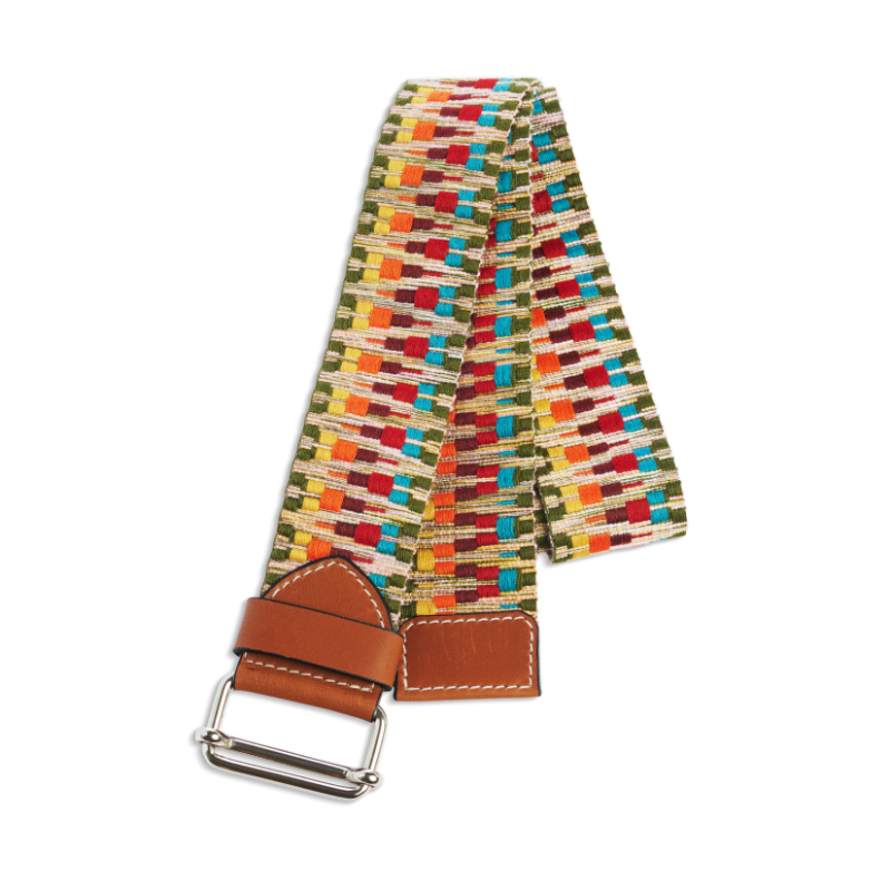 Parfaite sur un jean ou sur une robe, cette ceinture en coton réglable et ses finitions en cuir offre un confort optimal. Déclinée dans différents coloris, motifs et matières elle permet d’accessoiriser votre garde-robe.