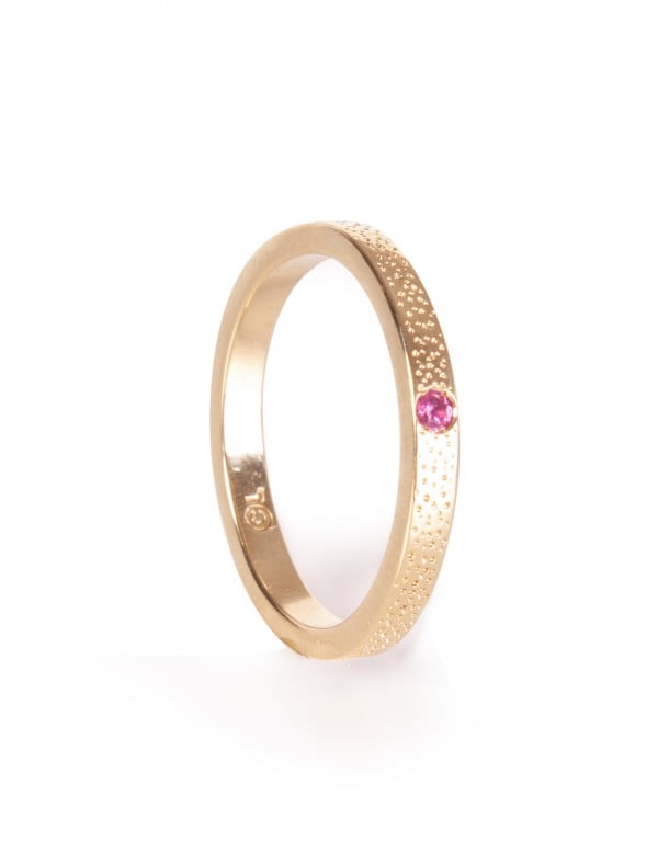 Cette bague en or massif sertie d'un saphir rose est une déclinaison de l'alliance la "Chanceuse". Elle est fabriquée sur-mesure, vous pouvez donc demander la pierre précieuse de votre choix.La bague fait 2,3 mm de largeur et 1,5 mm d'épaisseur. La pierre ne pourra pas excéder 1,5 mm de diamètre.Délai de réalisation entre 2 et 3 mois.Or 18 carats certifié Fairmined. Finition brillante.